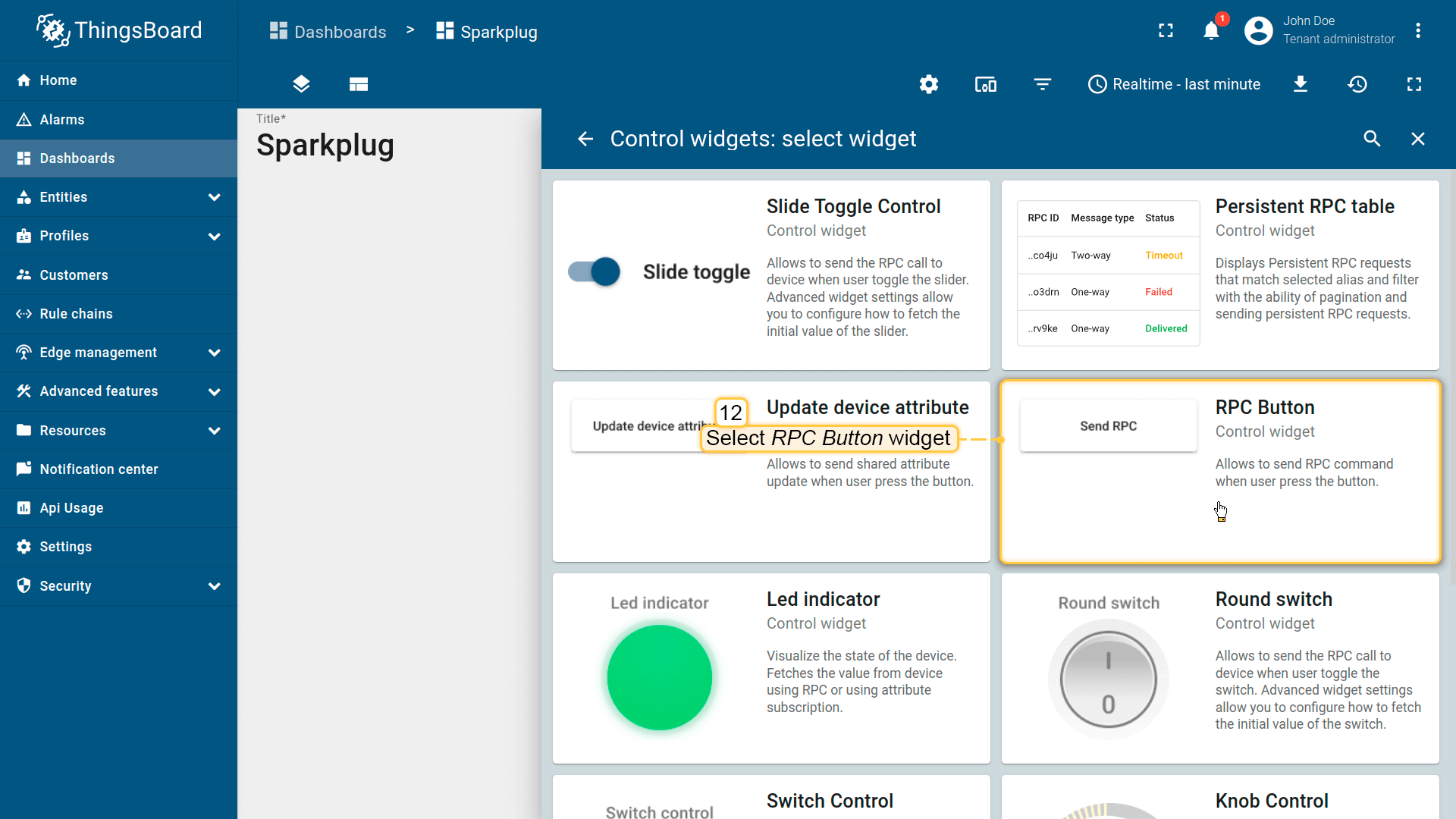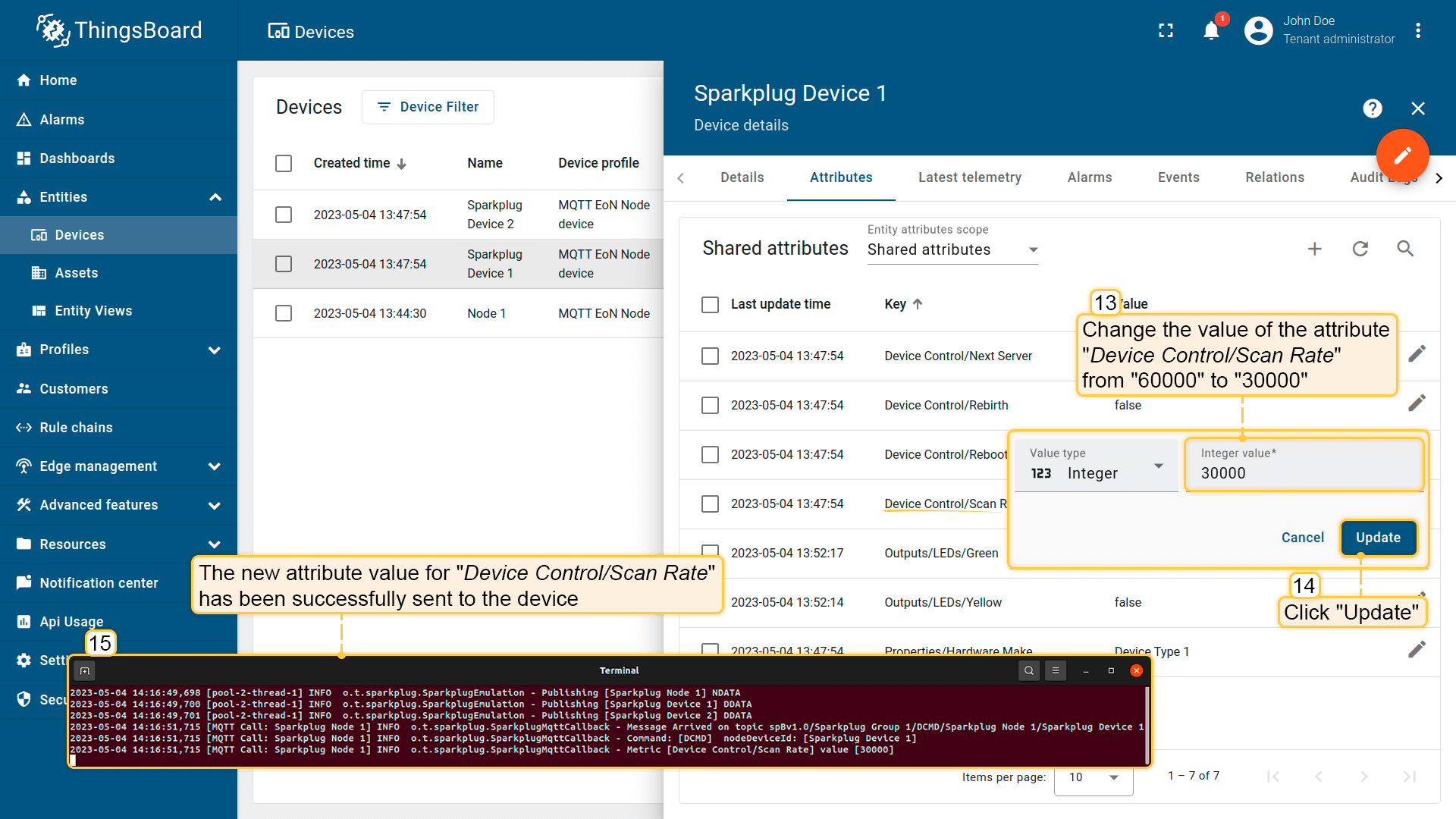 使用ThingsBoard RPC命令从服务器向MQTT EoN/设备更新指标