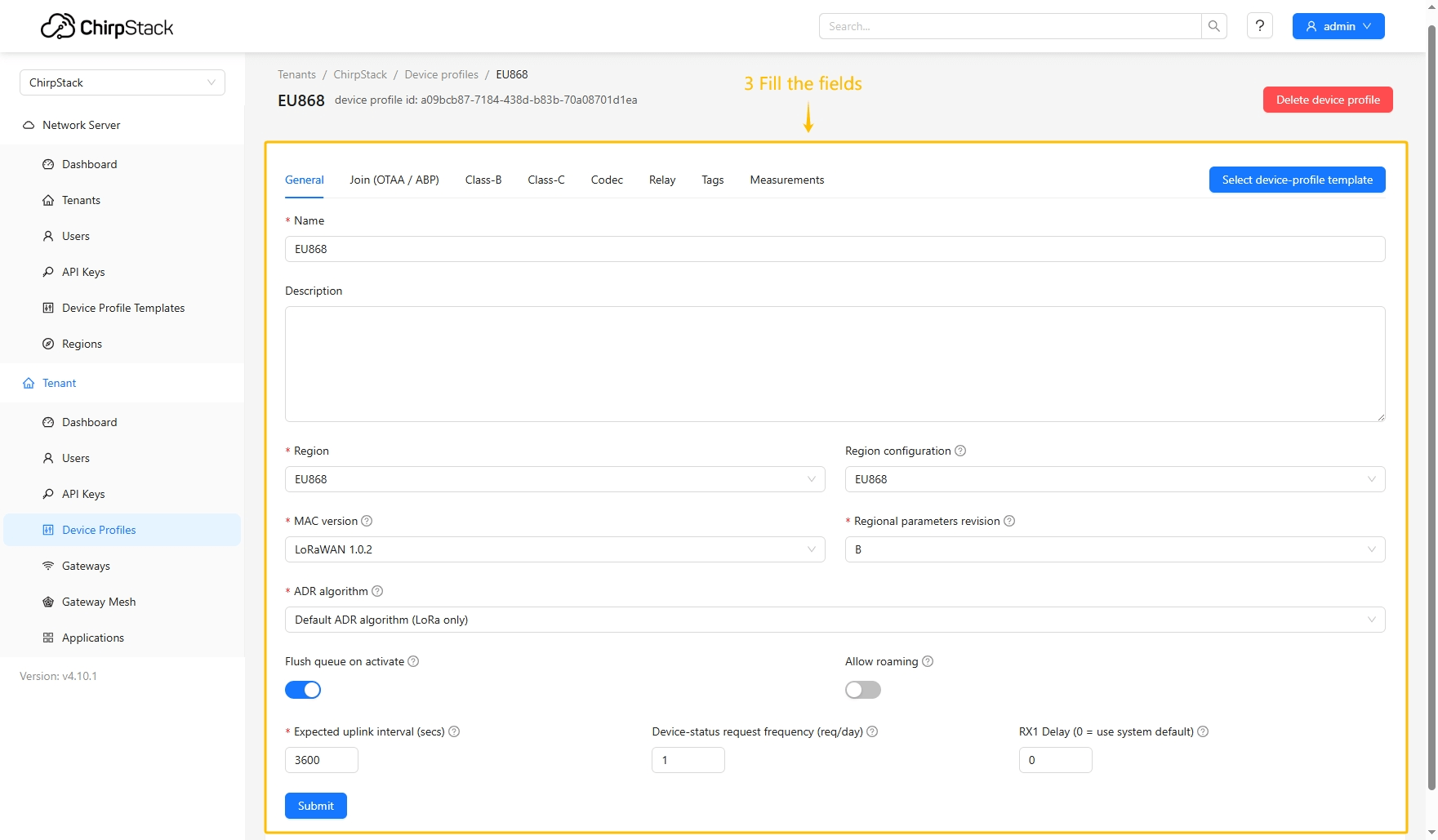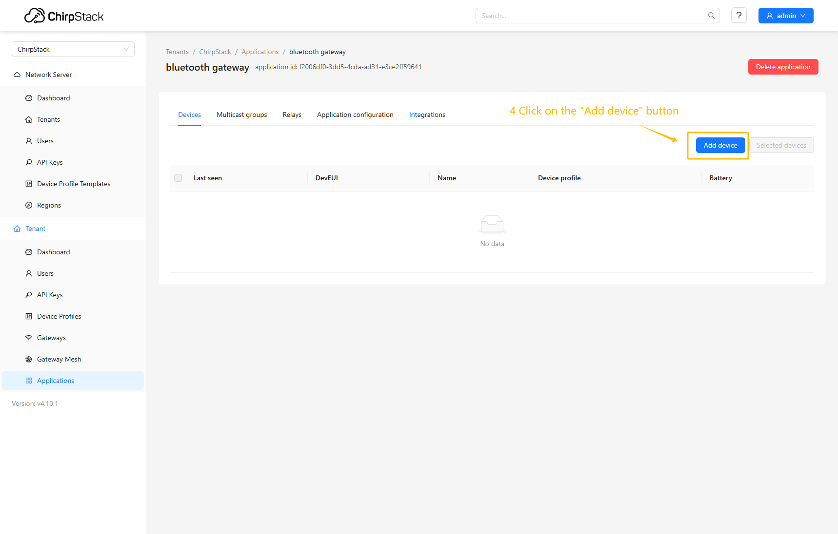Enter your Application键 in this field and click Submit button to保存the设备.