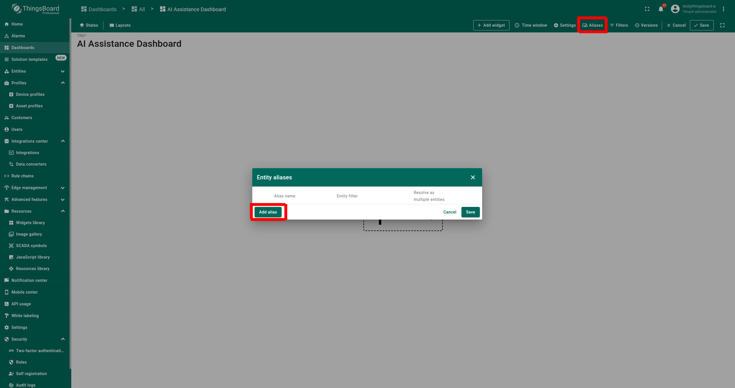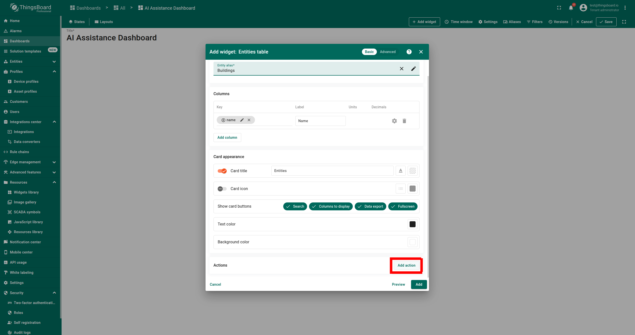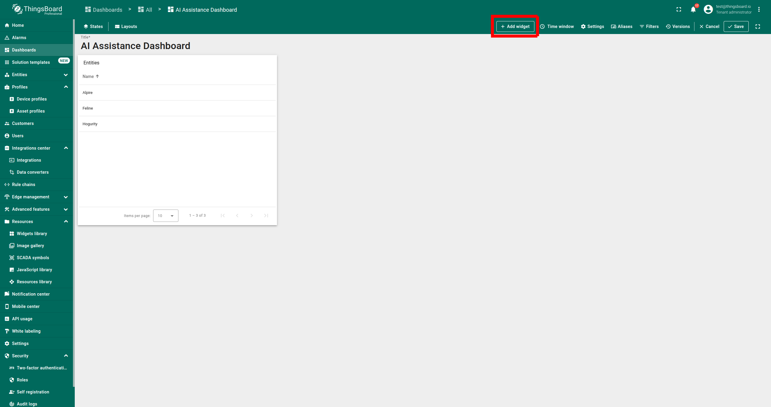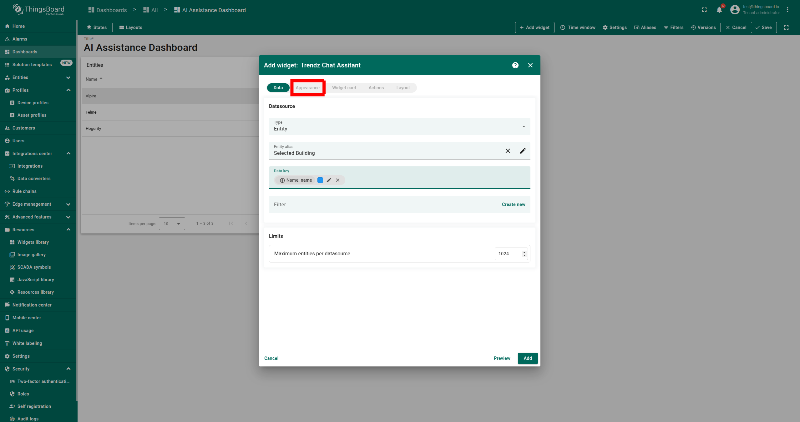 AI 助手部件是一种交互工具,允许用户通过聊天会话快速检索和分析数据。它可添加到ThingsBoard的仪表板中,便于提问并获得即时回复。