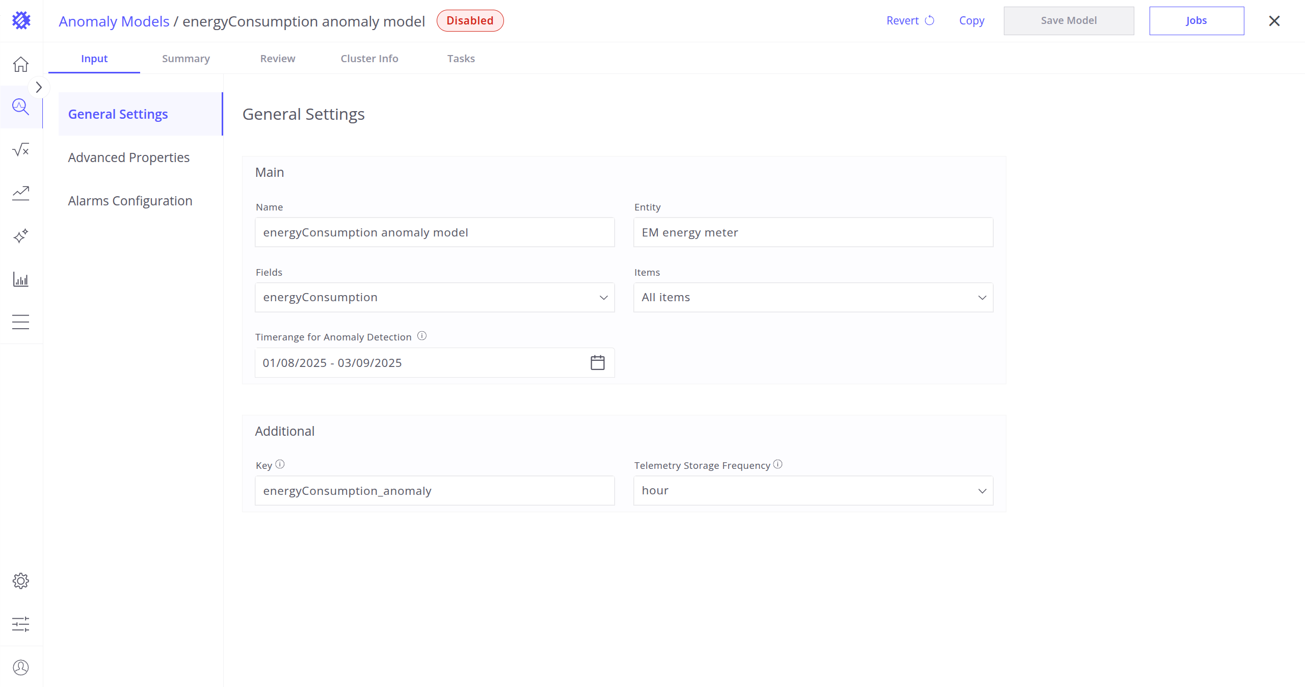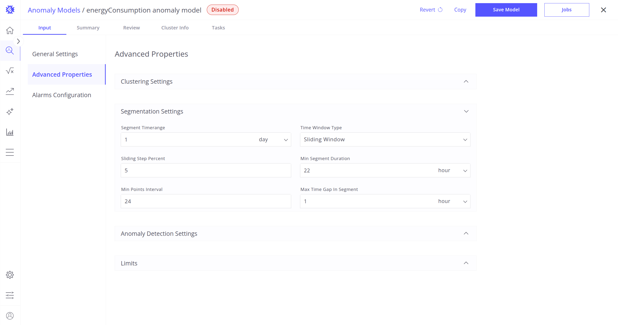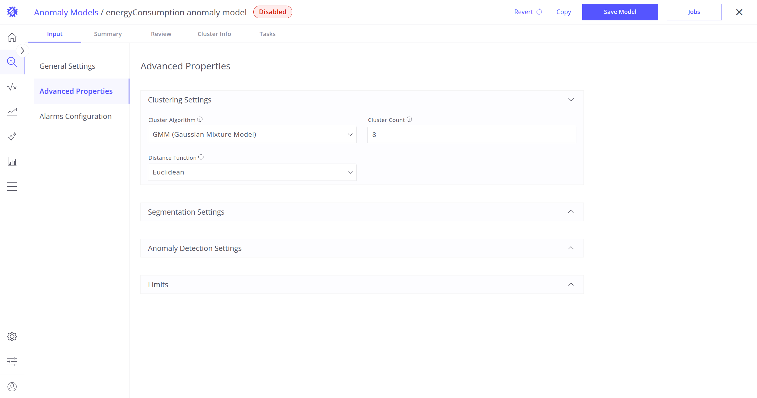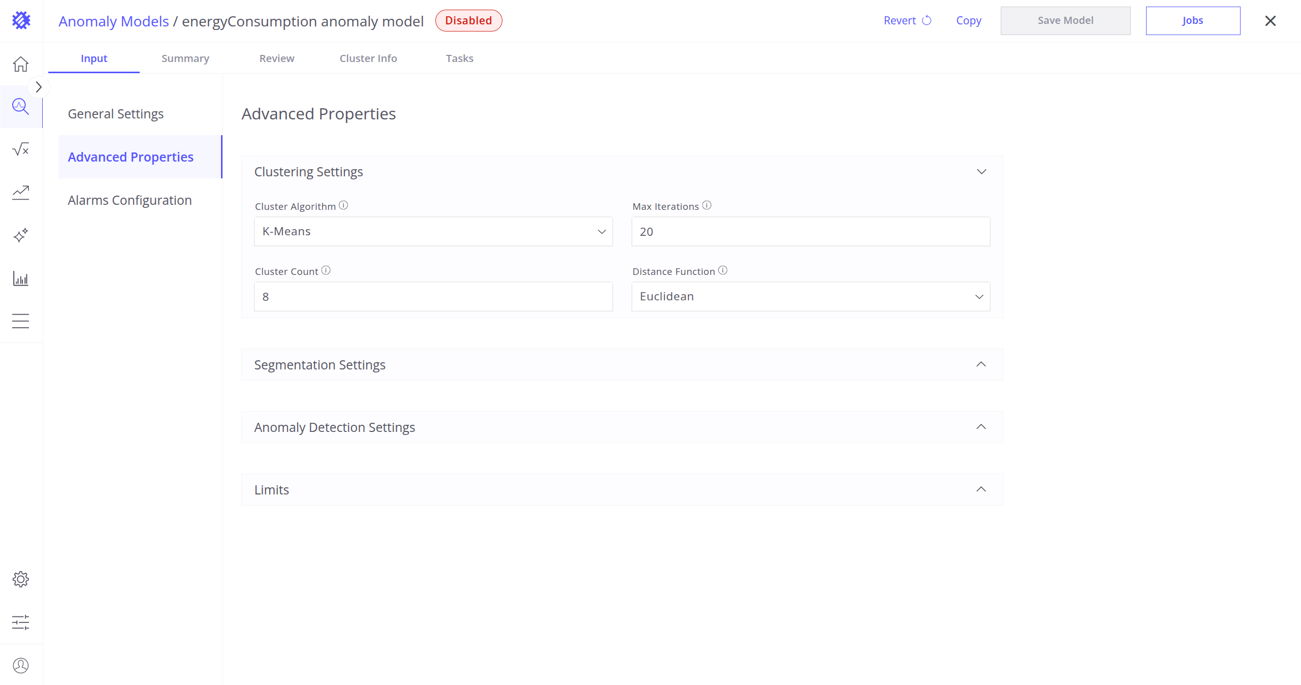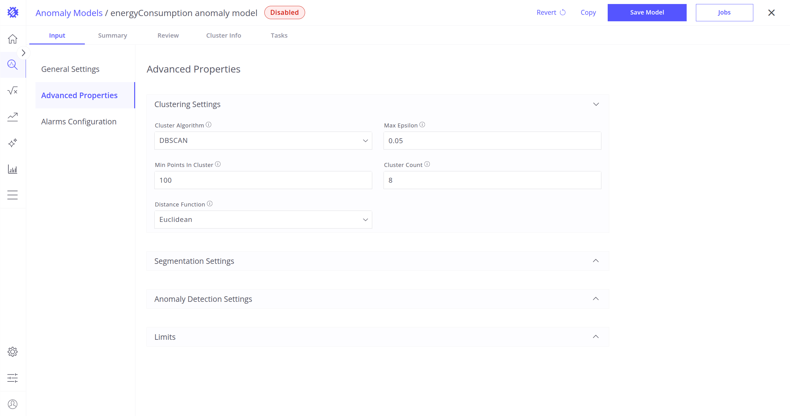 These settings define which clustering algorithm will be used to detect anomalies in your telemetry data, and how it will work.