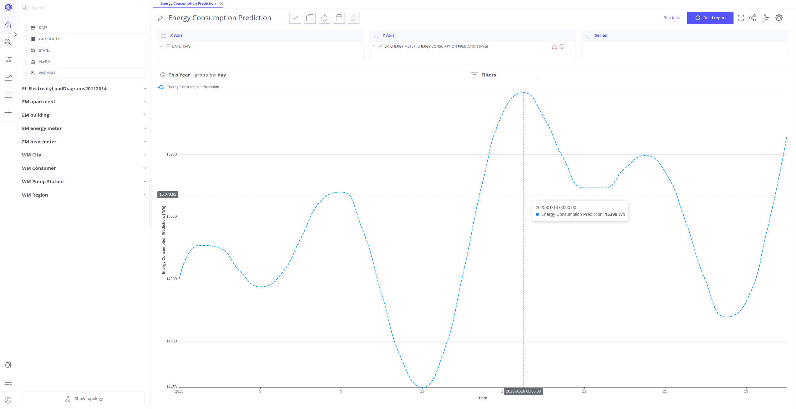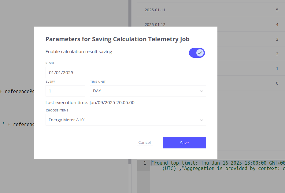 让我们考虑此功能的使用示例。今天是 2025 年 1 月 1 日,您有能源表设备,测量 kWh 单位的“能耗”遥测。我们拥有 2024 年全年的历史遥测。