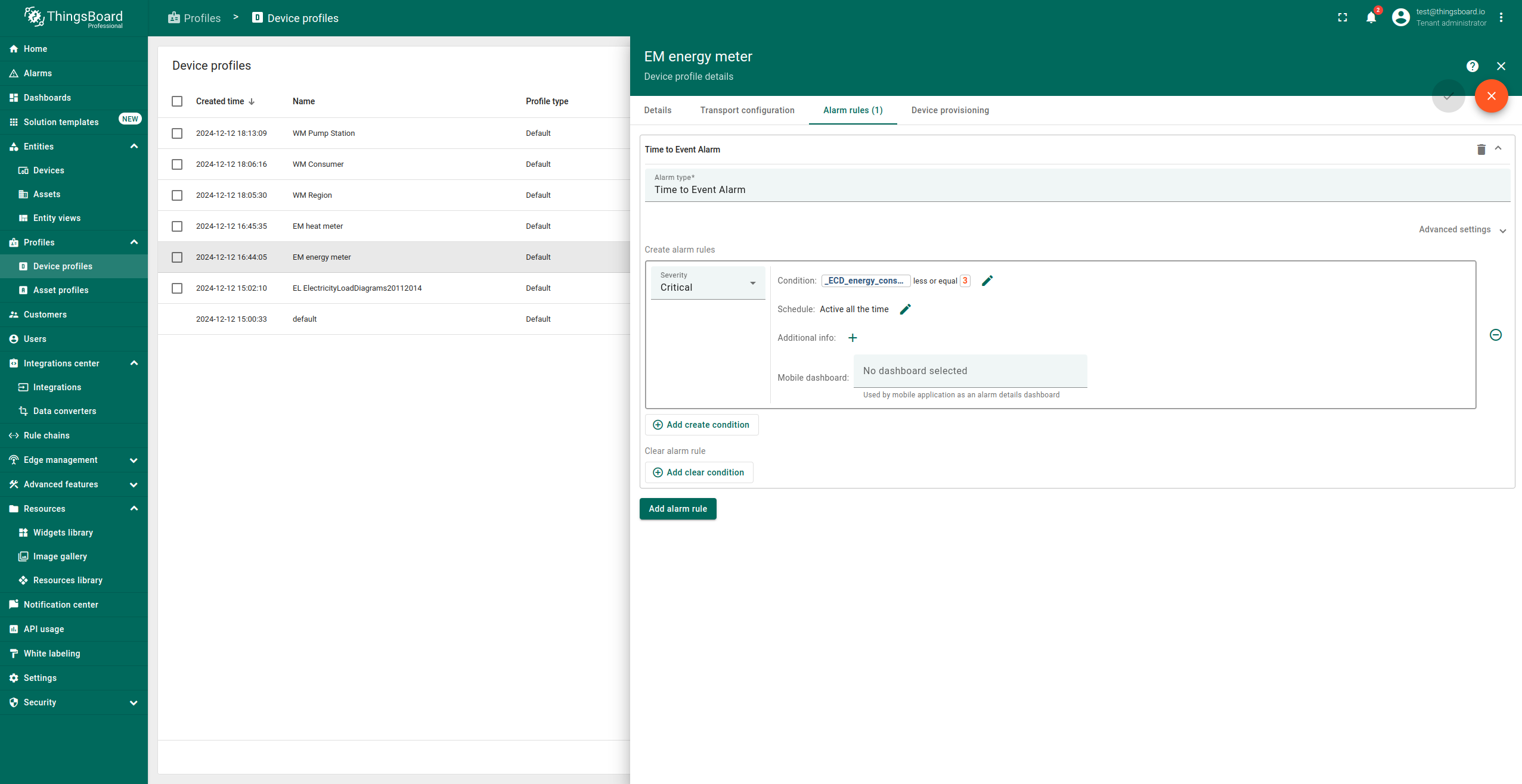现在我们有了倒计时遥测,且其在ThingsBoard 中可用,我们可以创建告警规则,让系统在未来出现问题时通知我们。为此,我们需要找到所需设备的设备/资产配置。