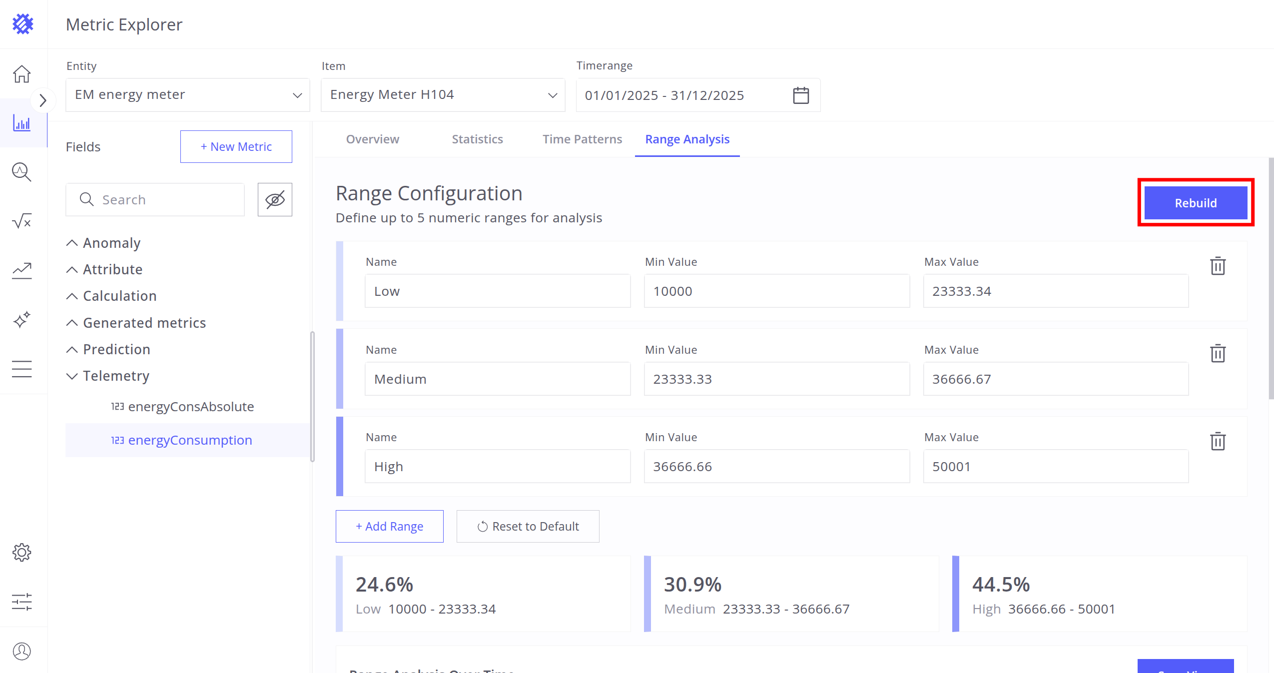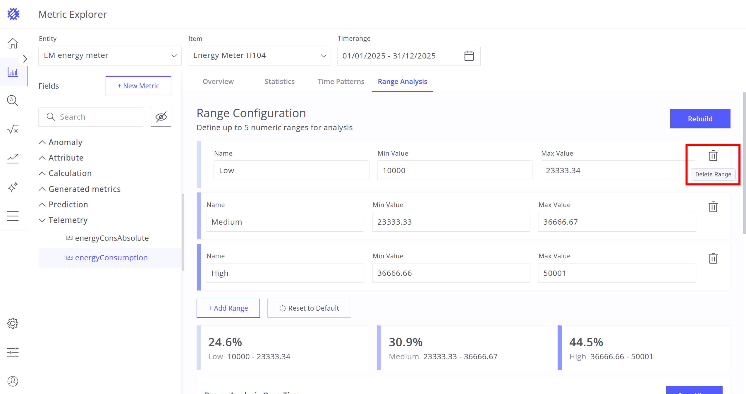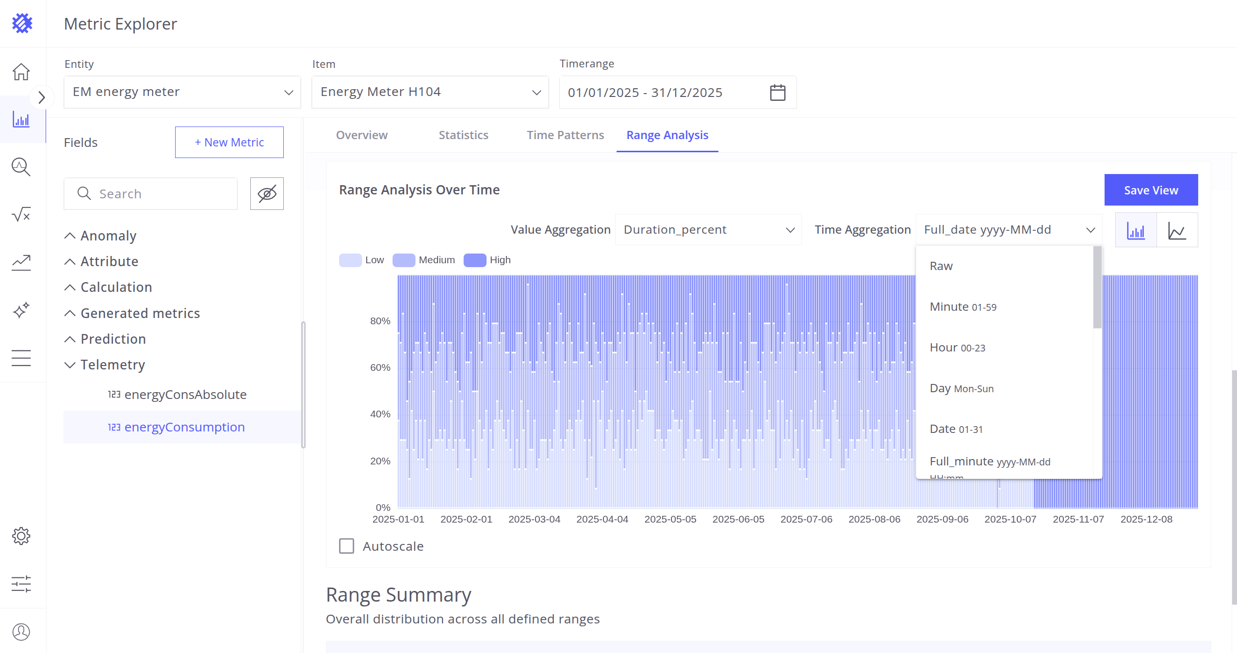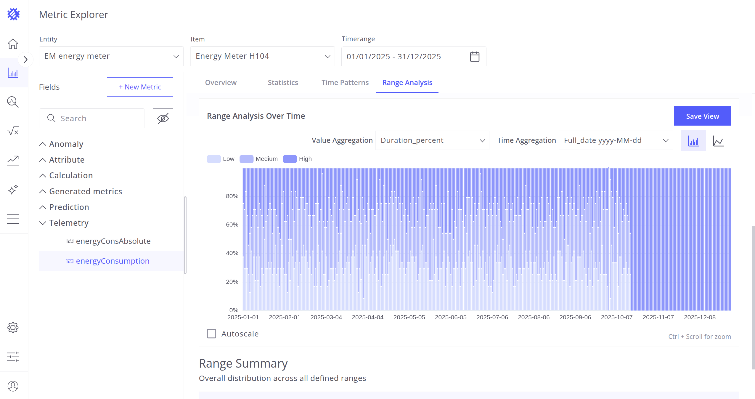 - Range Analysis - Distribution of telemetry values over time and range intervals.