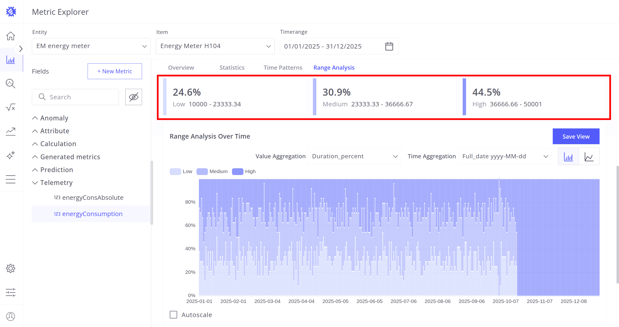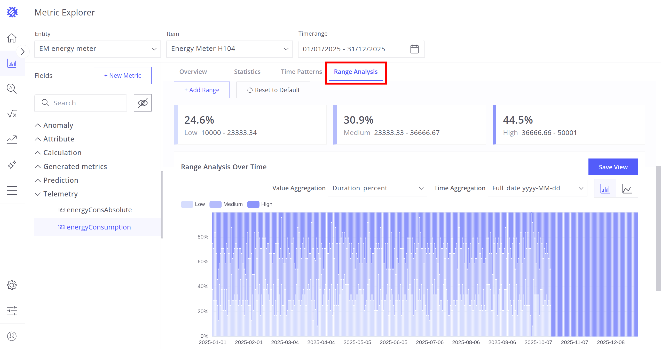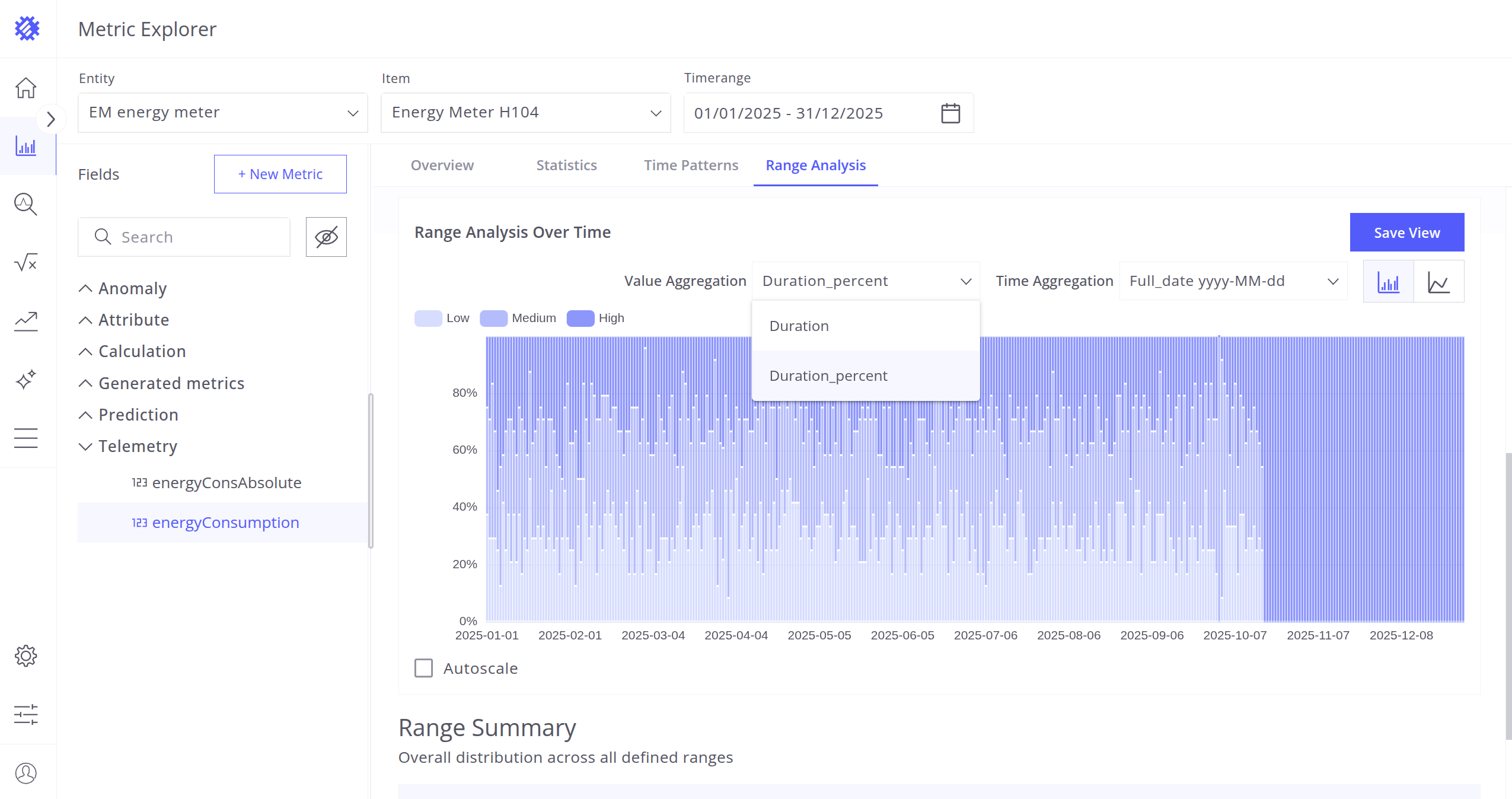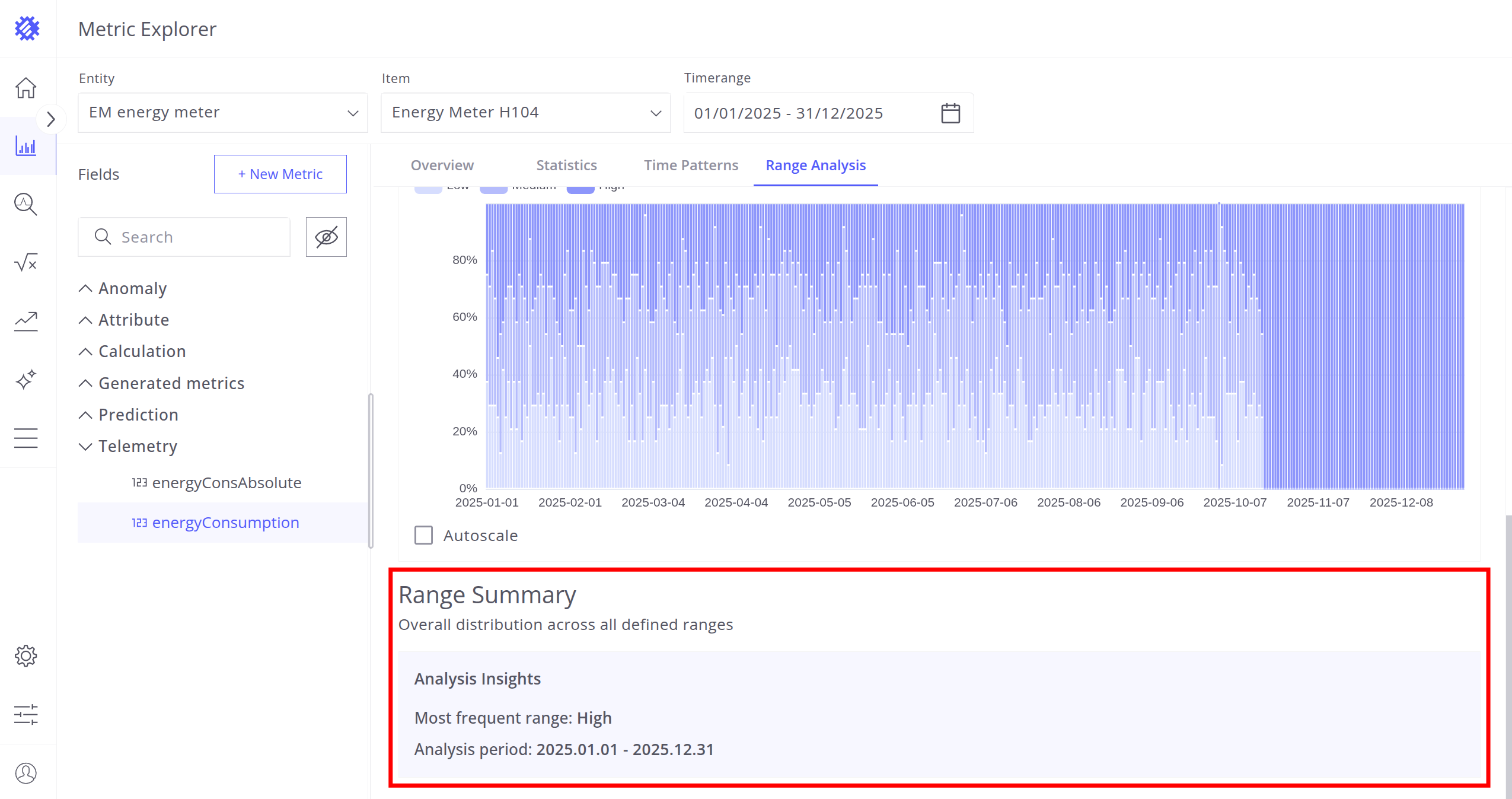 - Range Analysis - Distribution of telemetry values over time and range intervals.