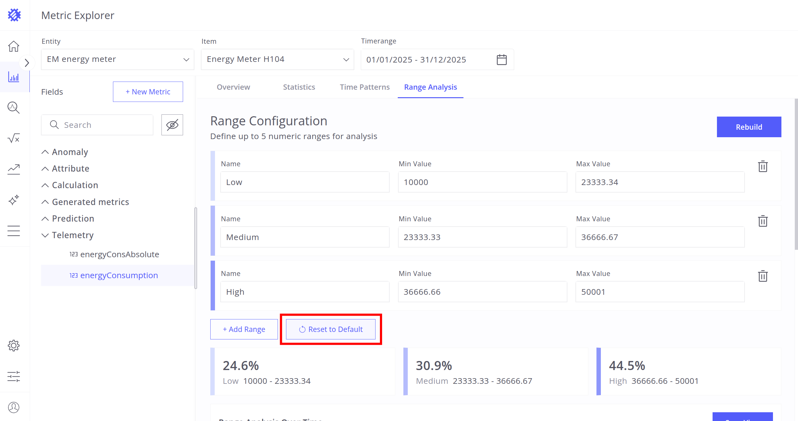 - Reset to default (three automatically calculated ranges).