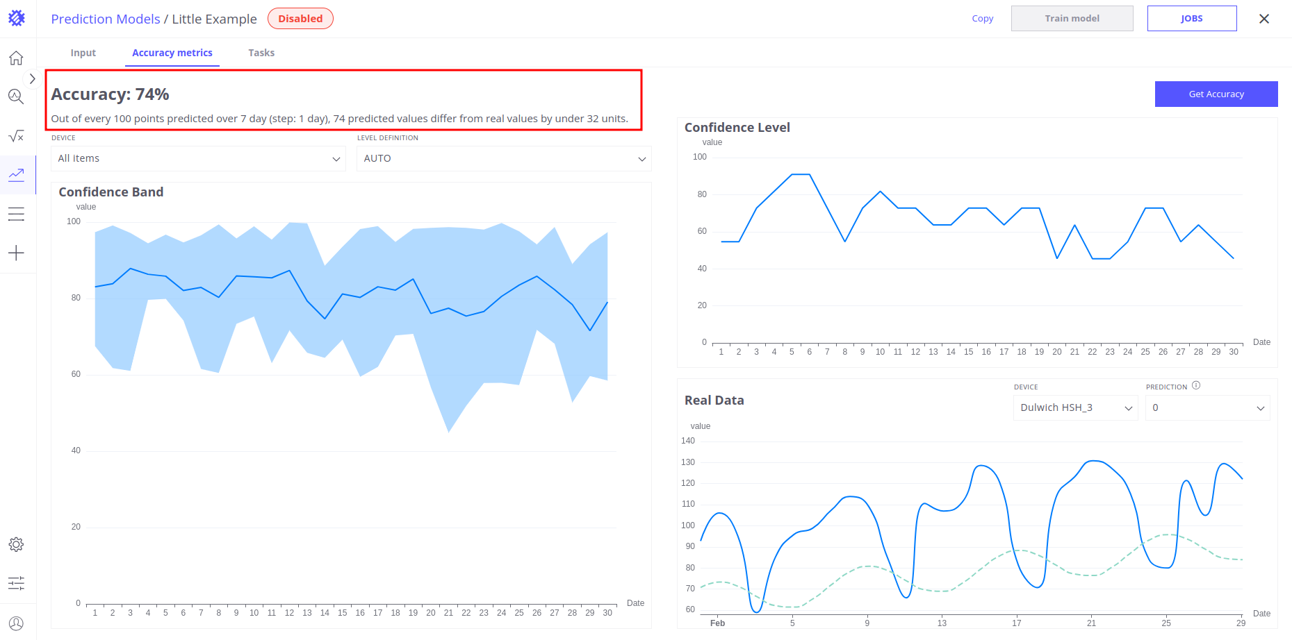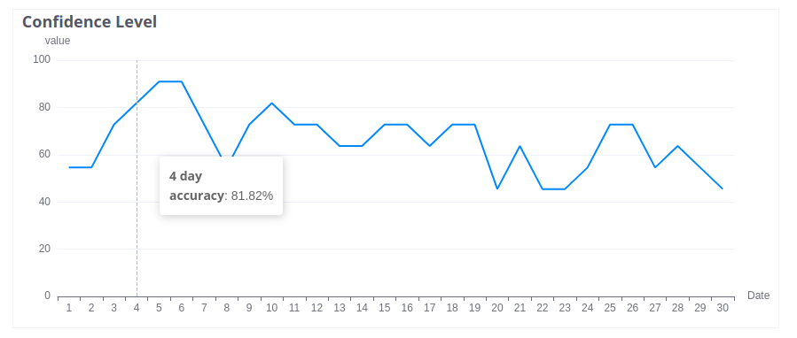 By carefully configuring these settings, you can tailor Trendz prediction models to generate precise and actionable forecasts based on your specific requirements. Once you’ve filled in the required inputs, click on the Get Accuracy button. The system will calculate the accuracy for your prediction model based on the selected parameters.