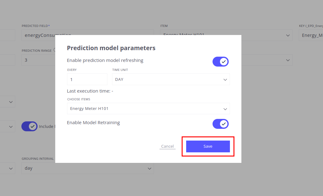 - Predicted Field: Choose energyConsumption as the field to forecast.