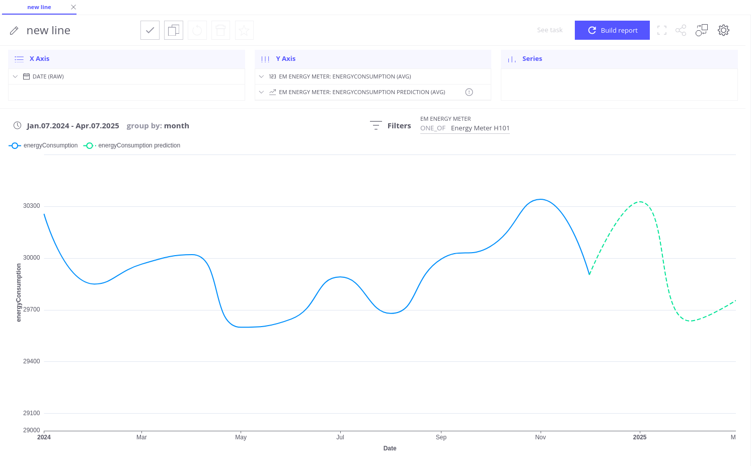 - Entity: Select Energy meter as the entity for prediction.