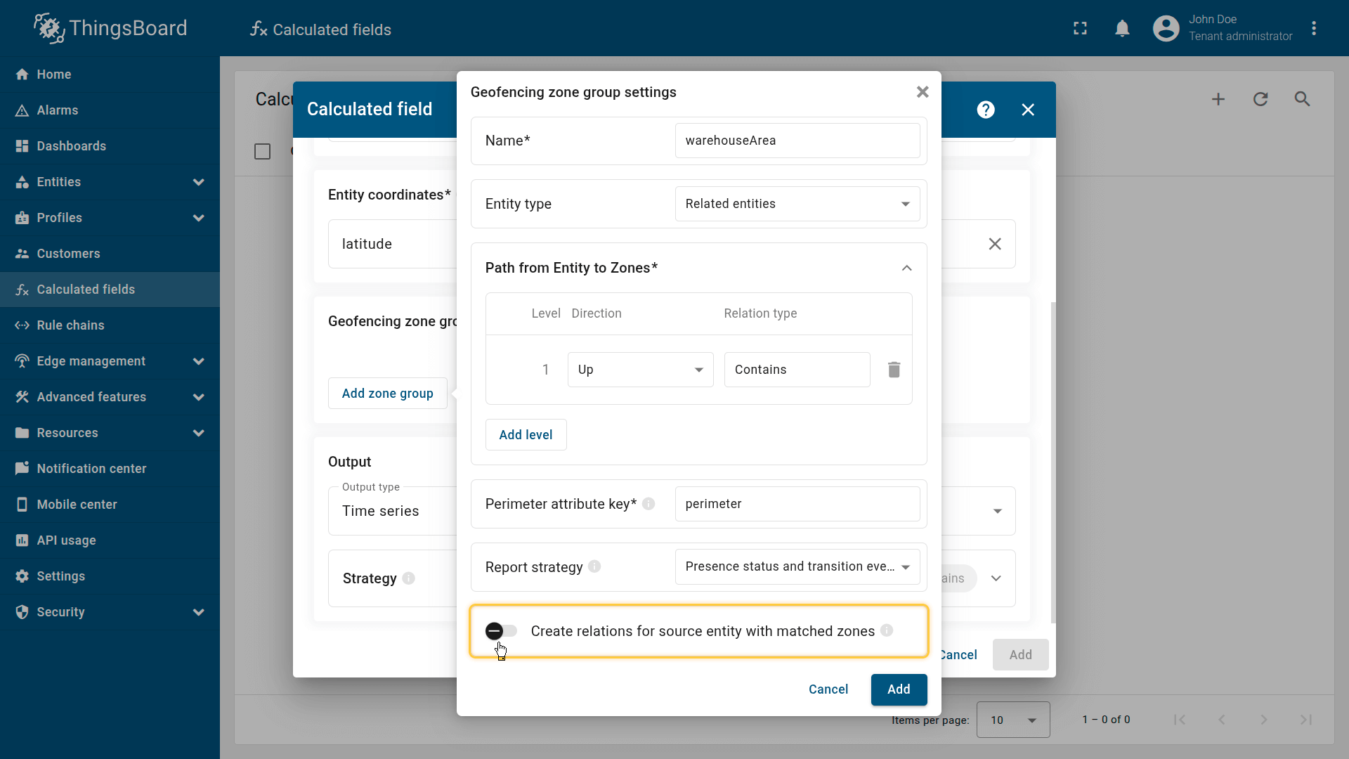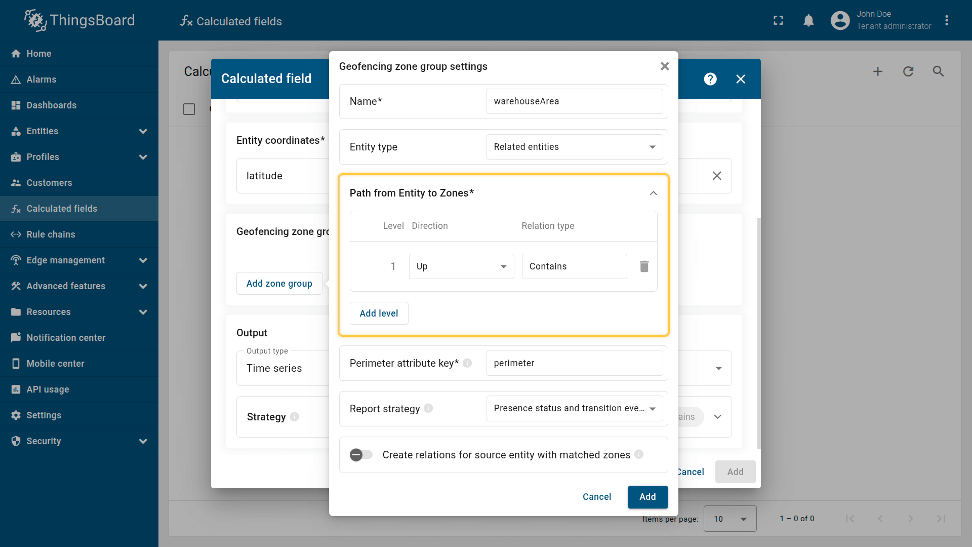 工作原理: 字段计算从拥有该实体的租户或客户检索周长属性。设备有效地继承在业务级别定义的区域。
