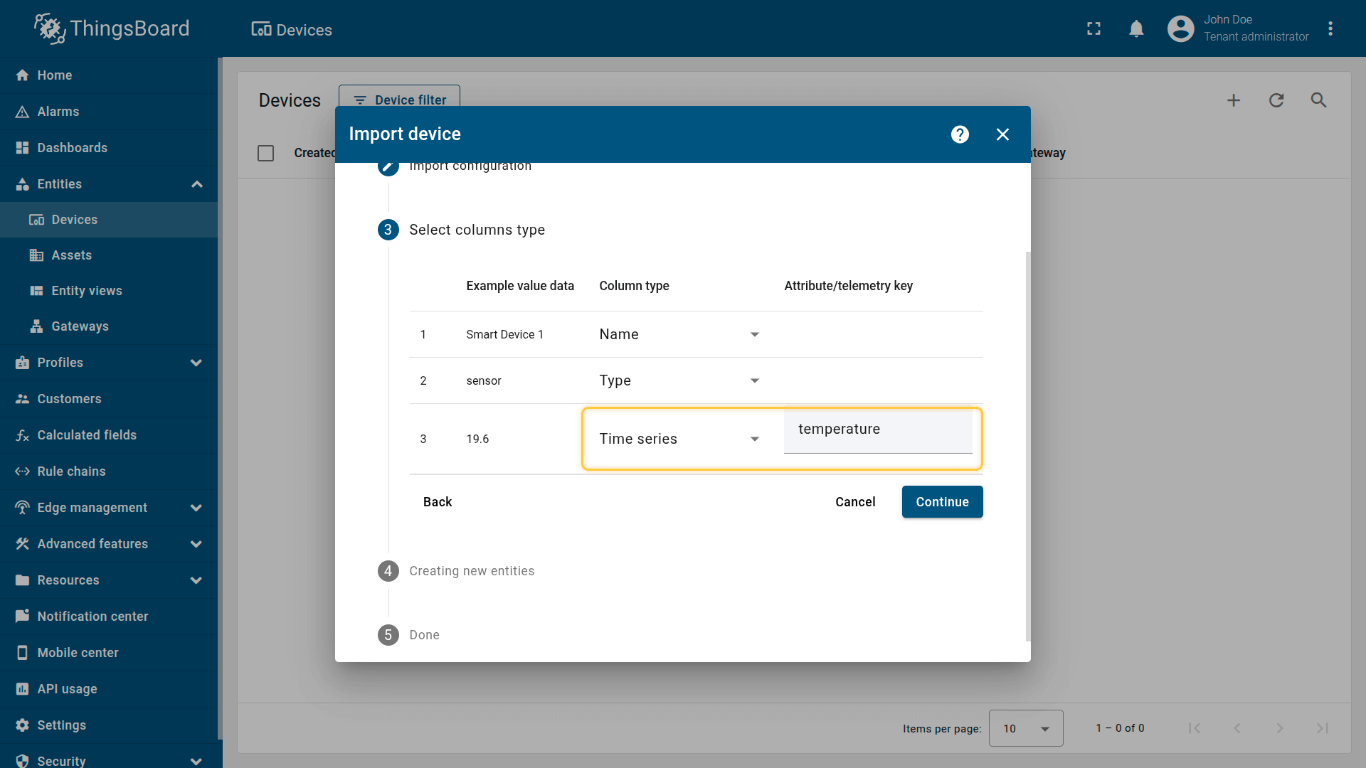 - 转到“设备”并导入 CSV文件