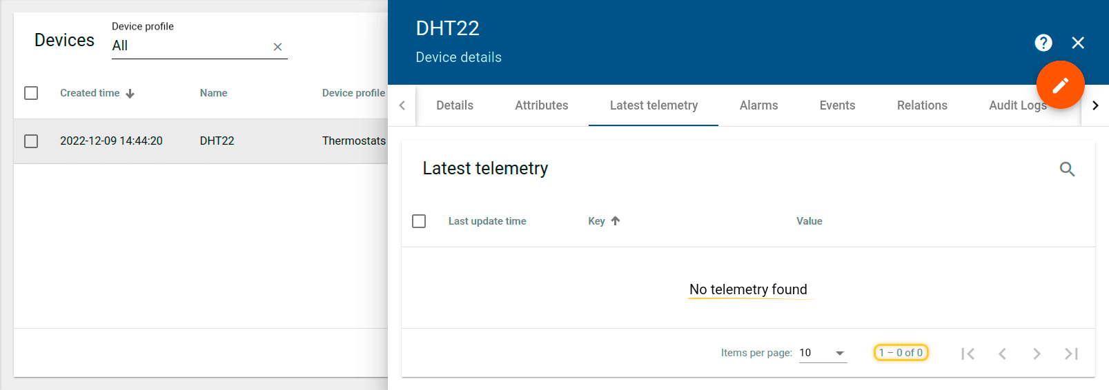 我们将看到设备最新遥测选项卡并没有遥测: