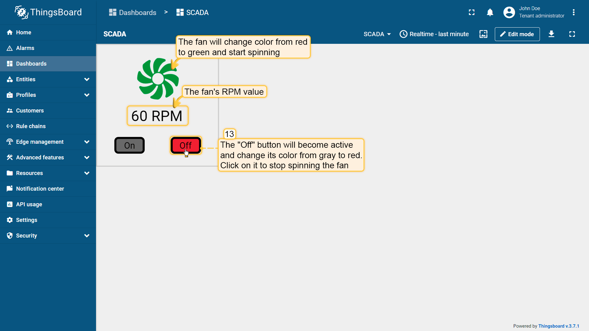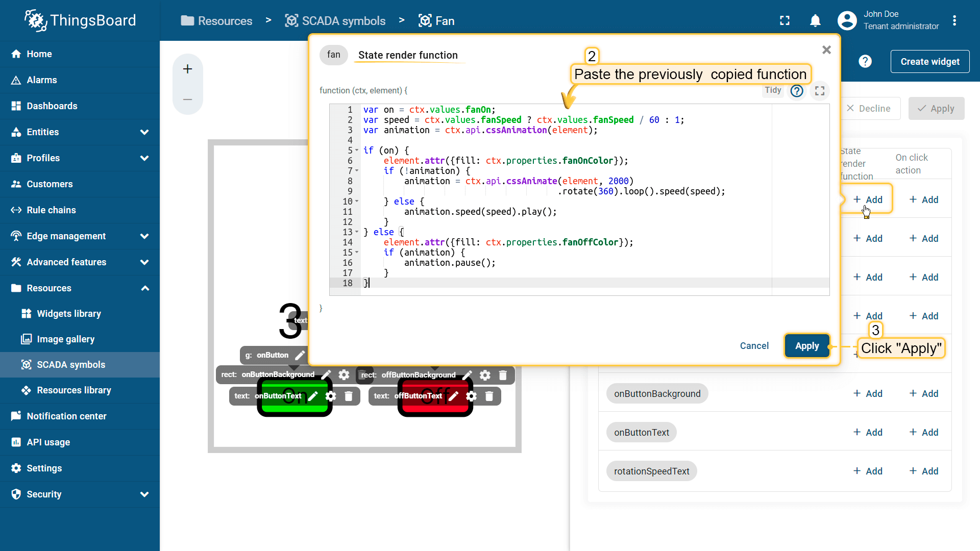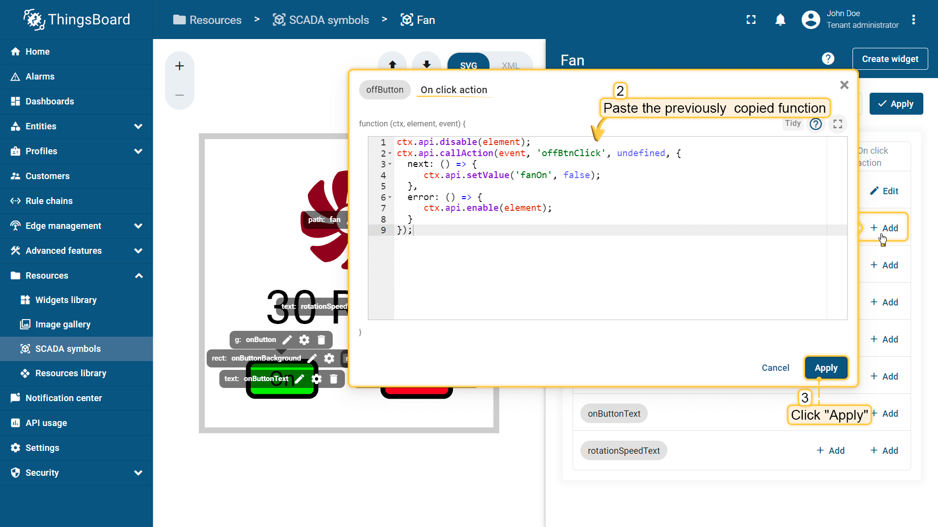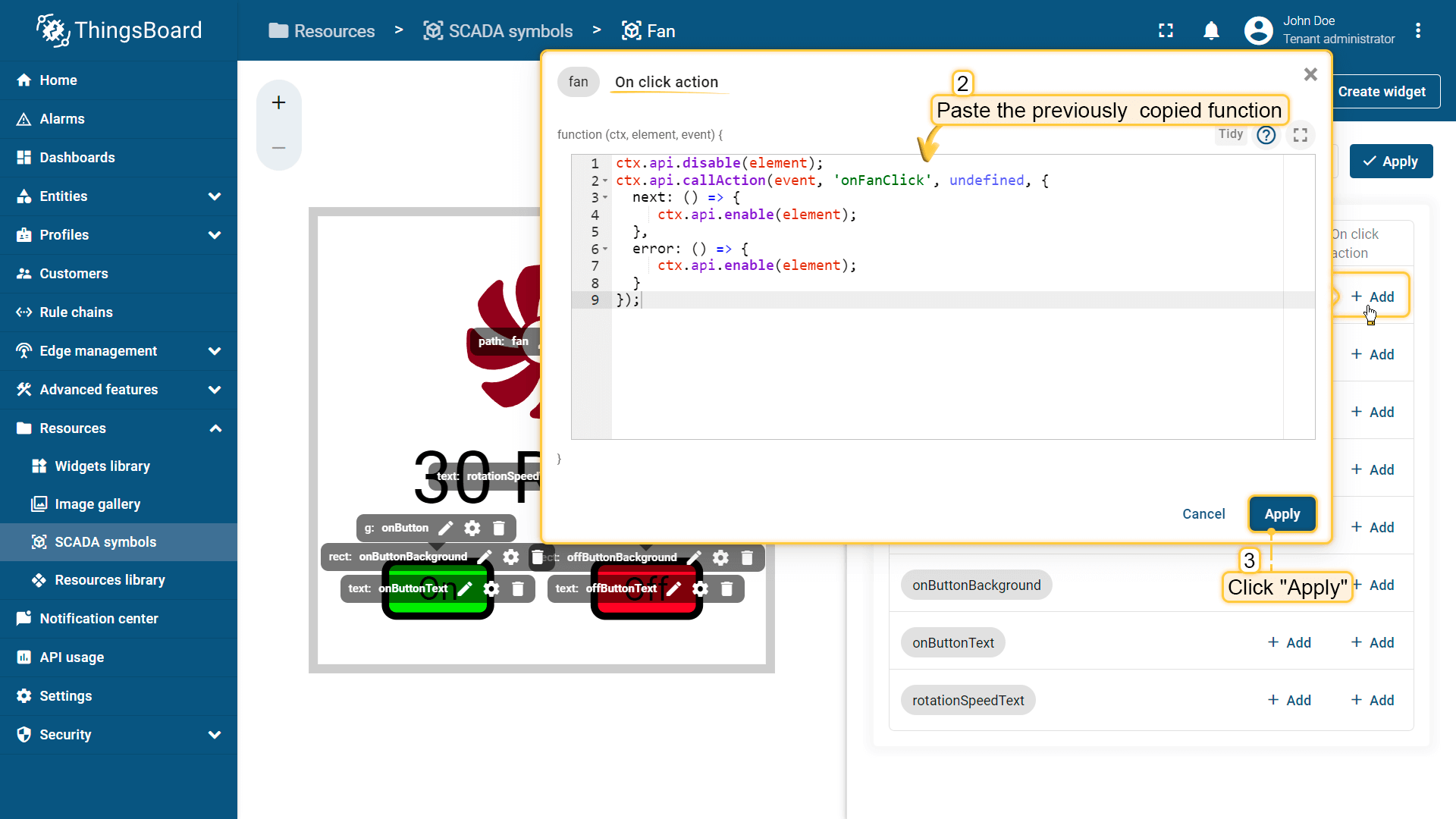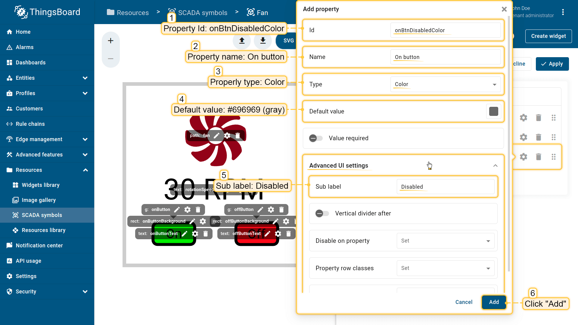 Behavior:描述SCADA symbol如何从平台接收数据,以及其在device或dashboard上触发的操作;