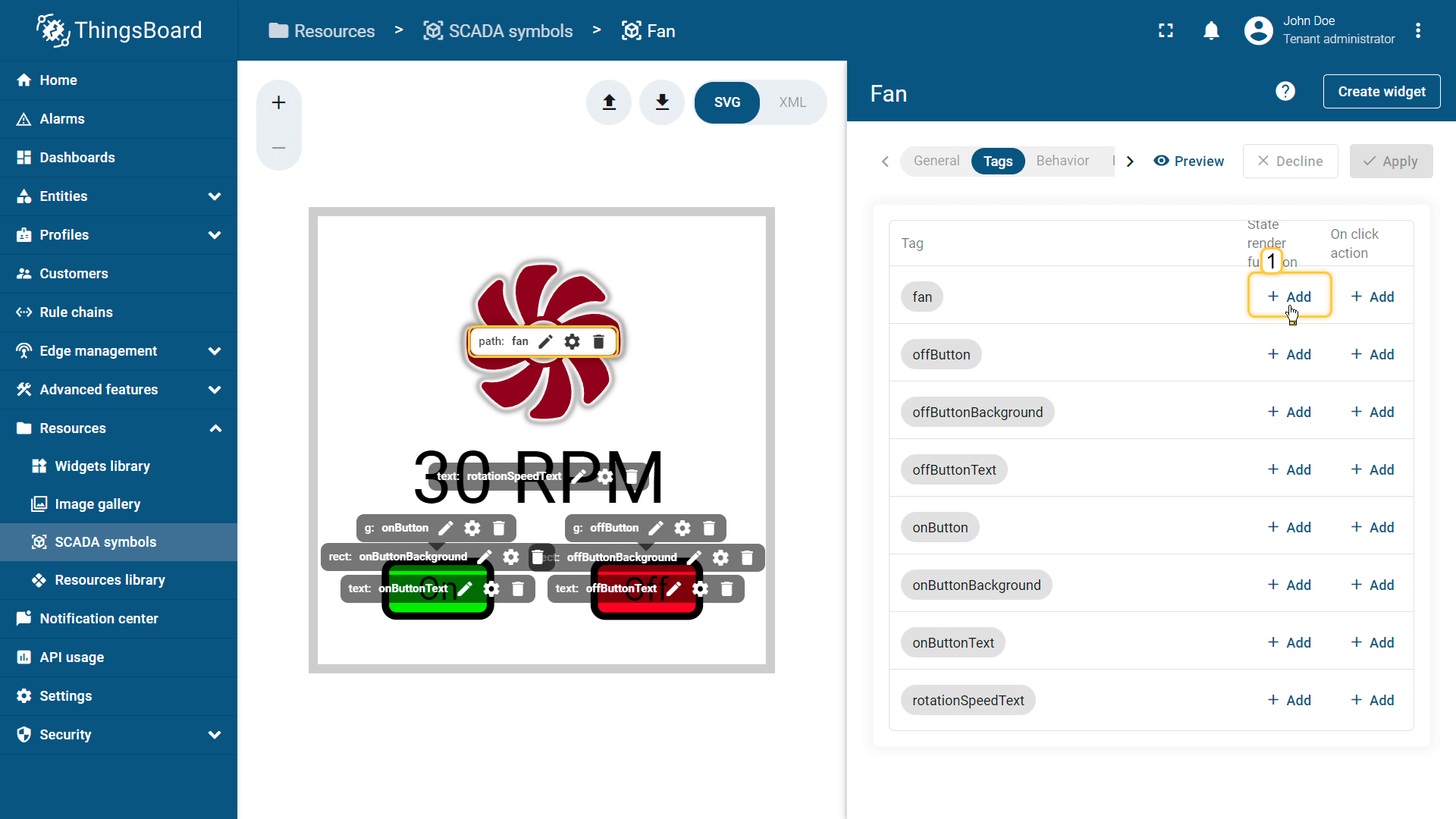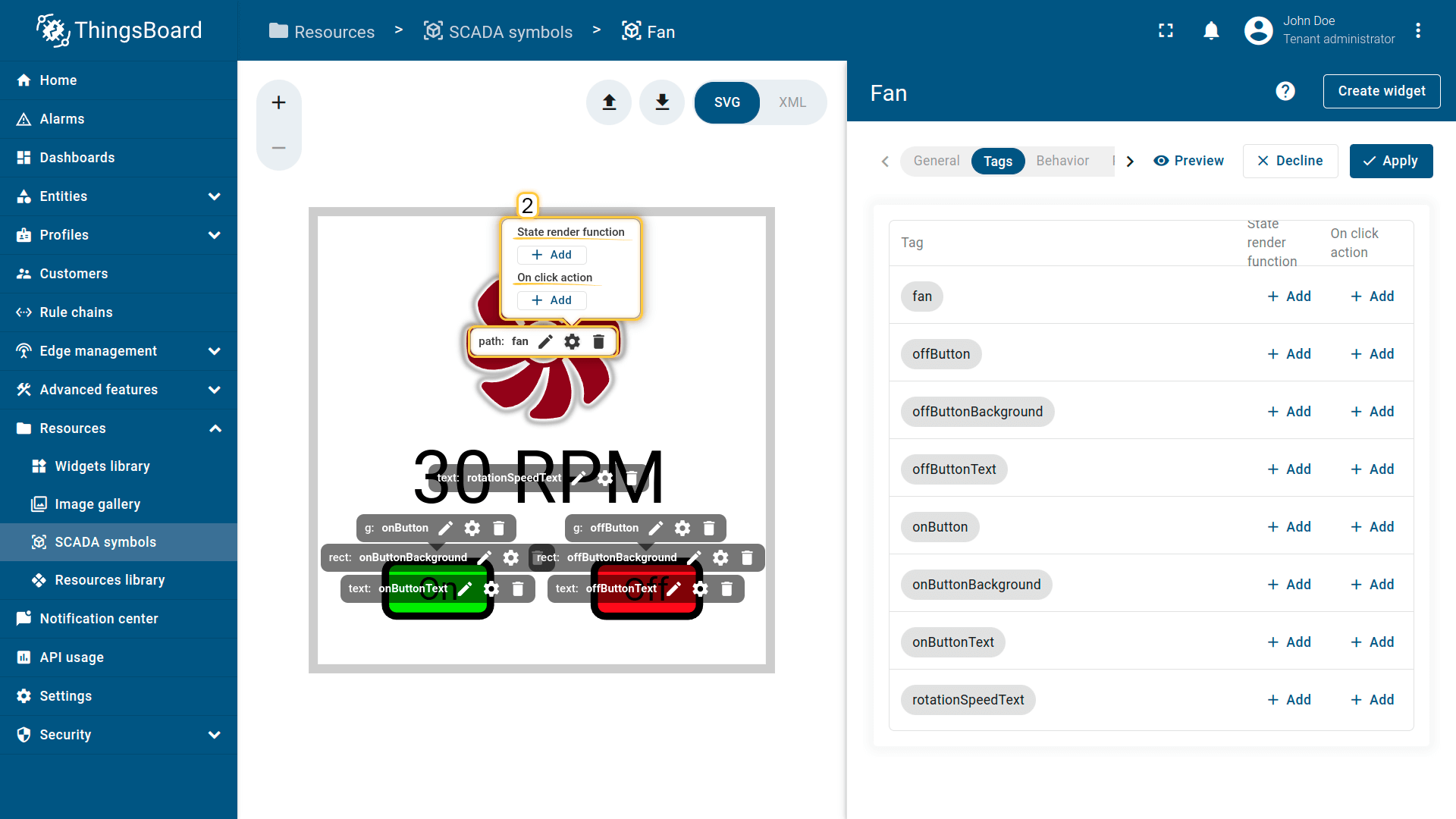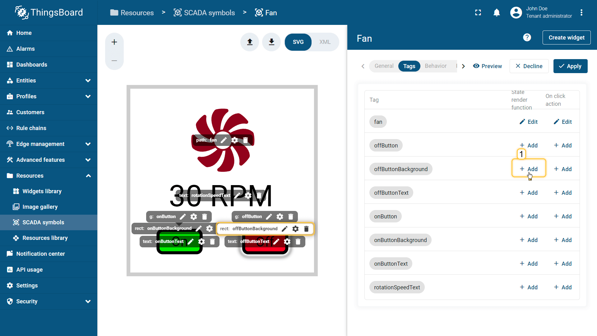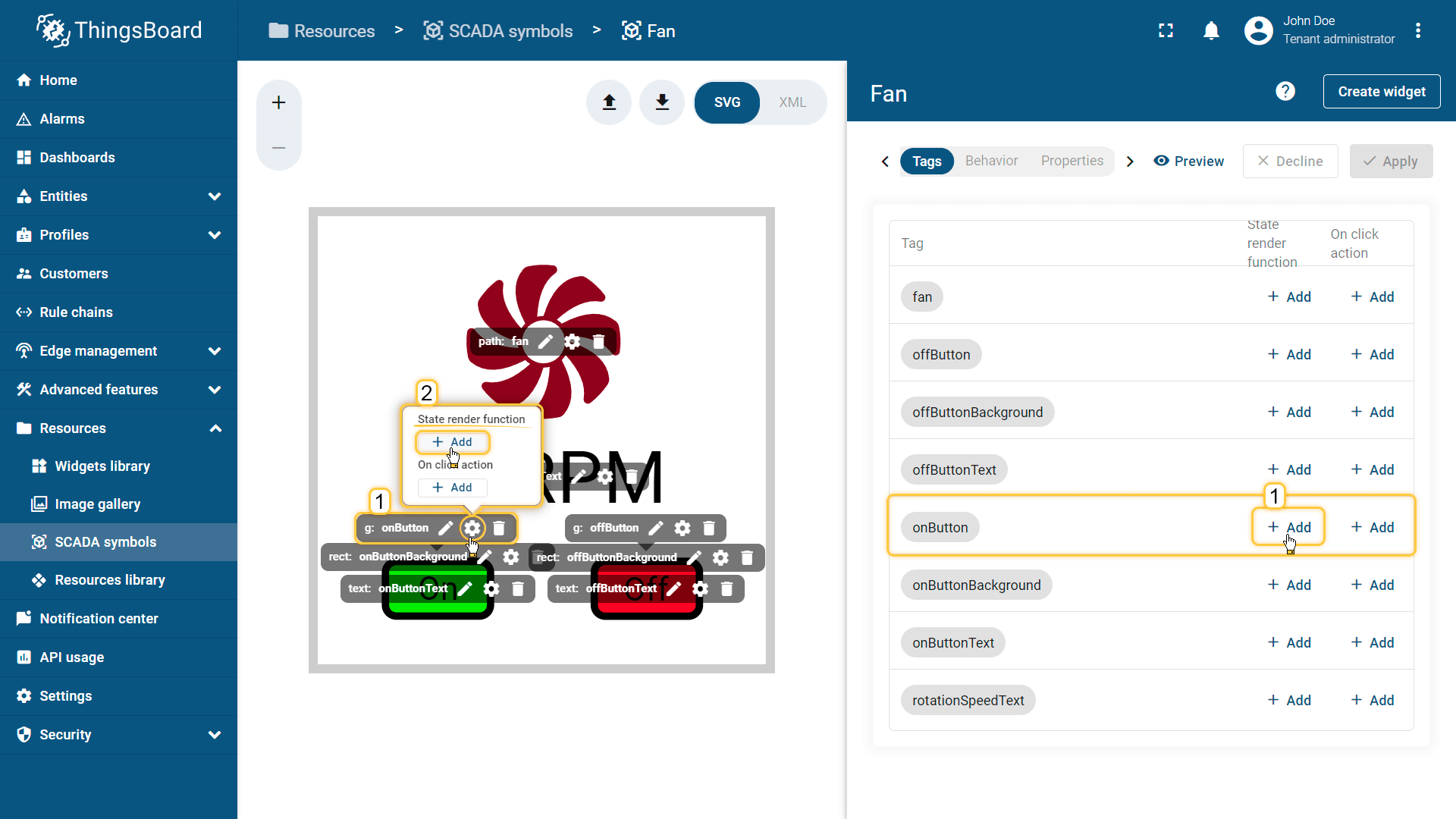 在ThingsBoard中创建SCADA symbol涉及SVG文件及以下概念: