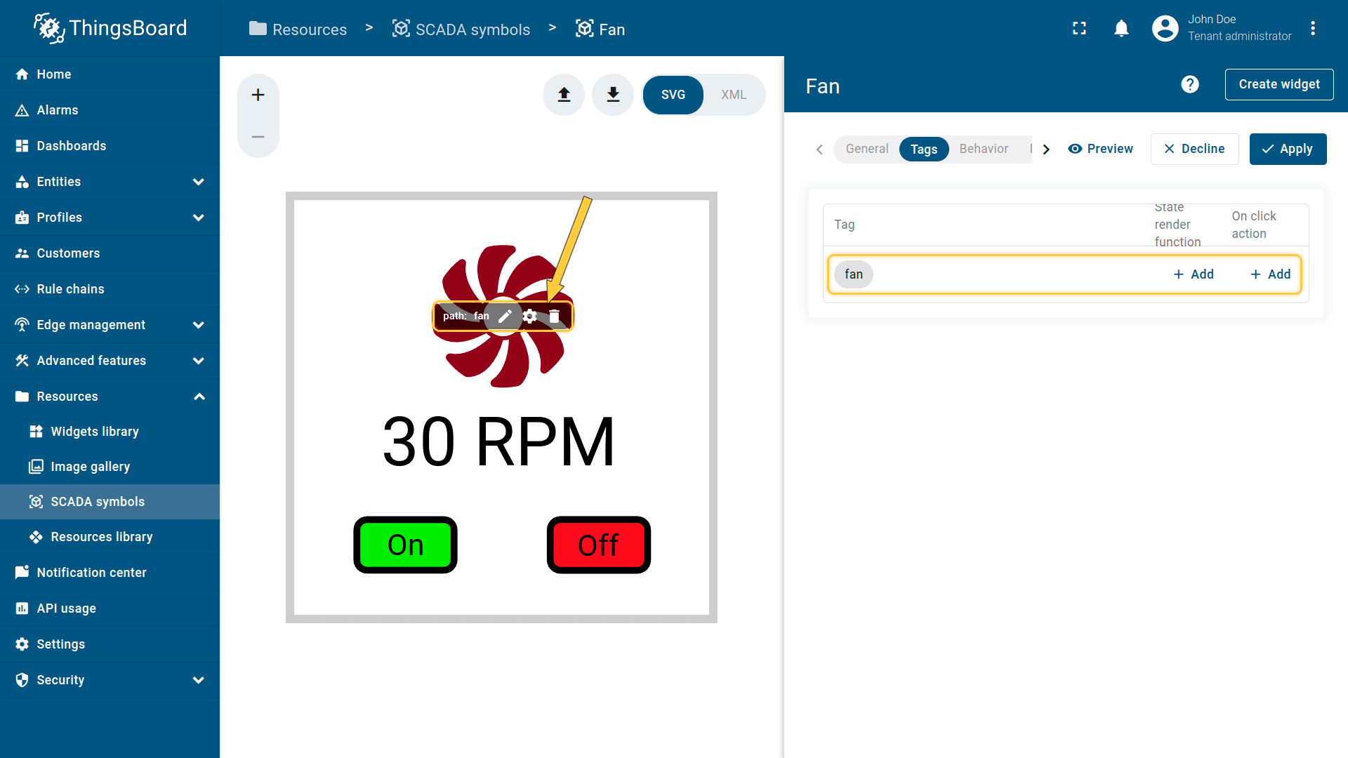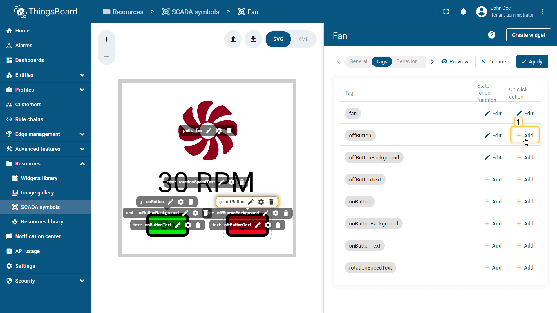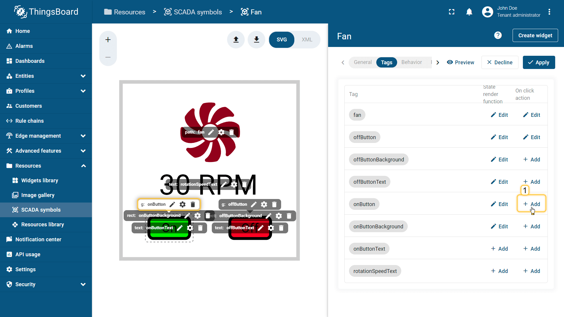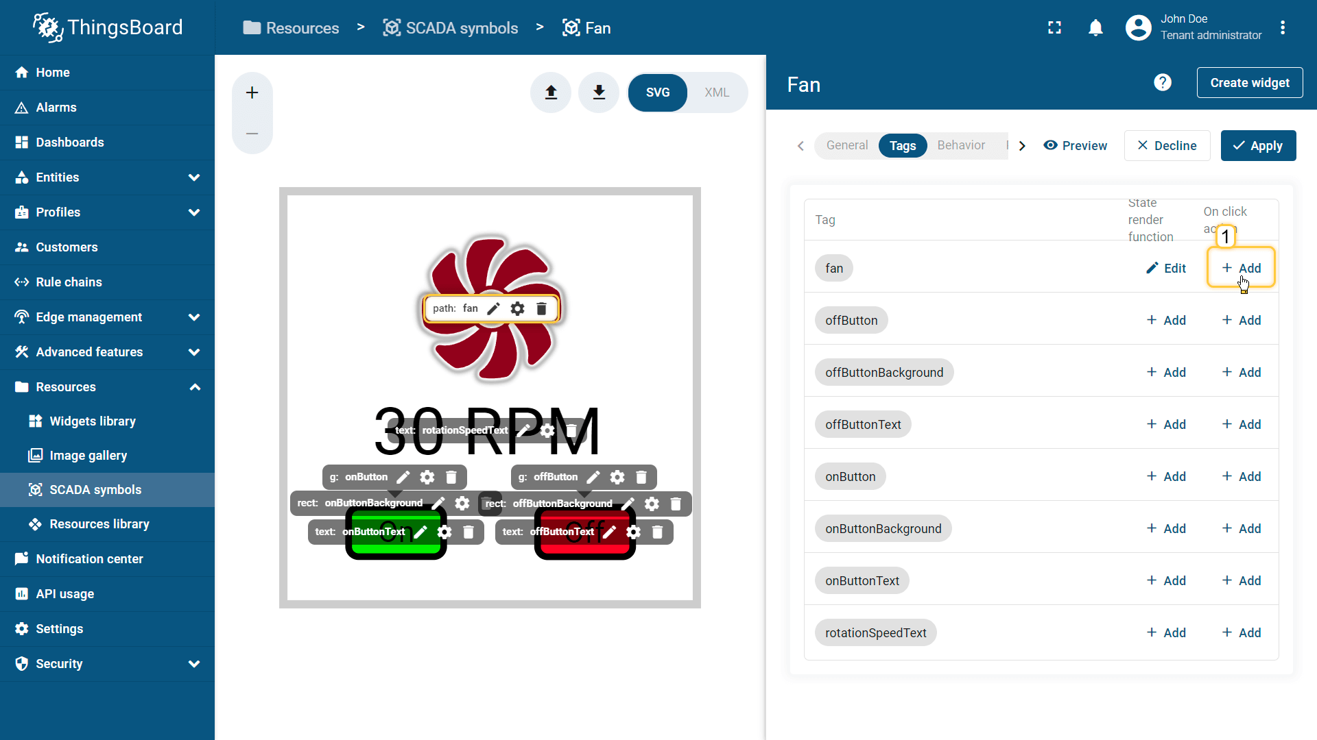 在ThingsBoard中创建SCADA symbol涉及SVG文件及以下概念: