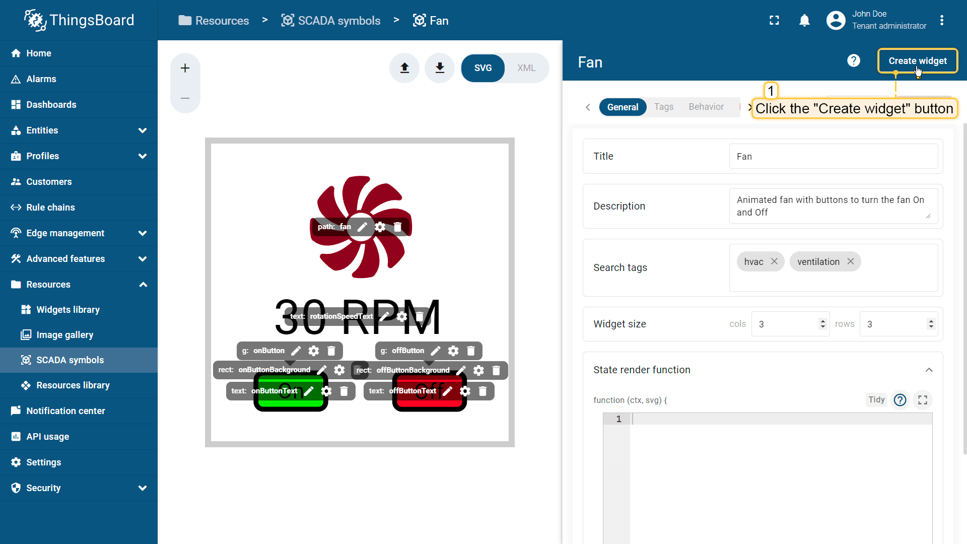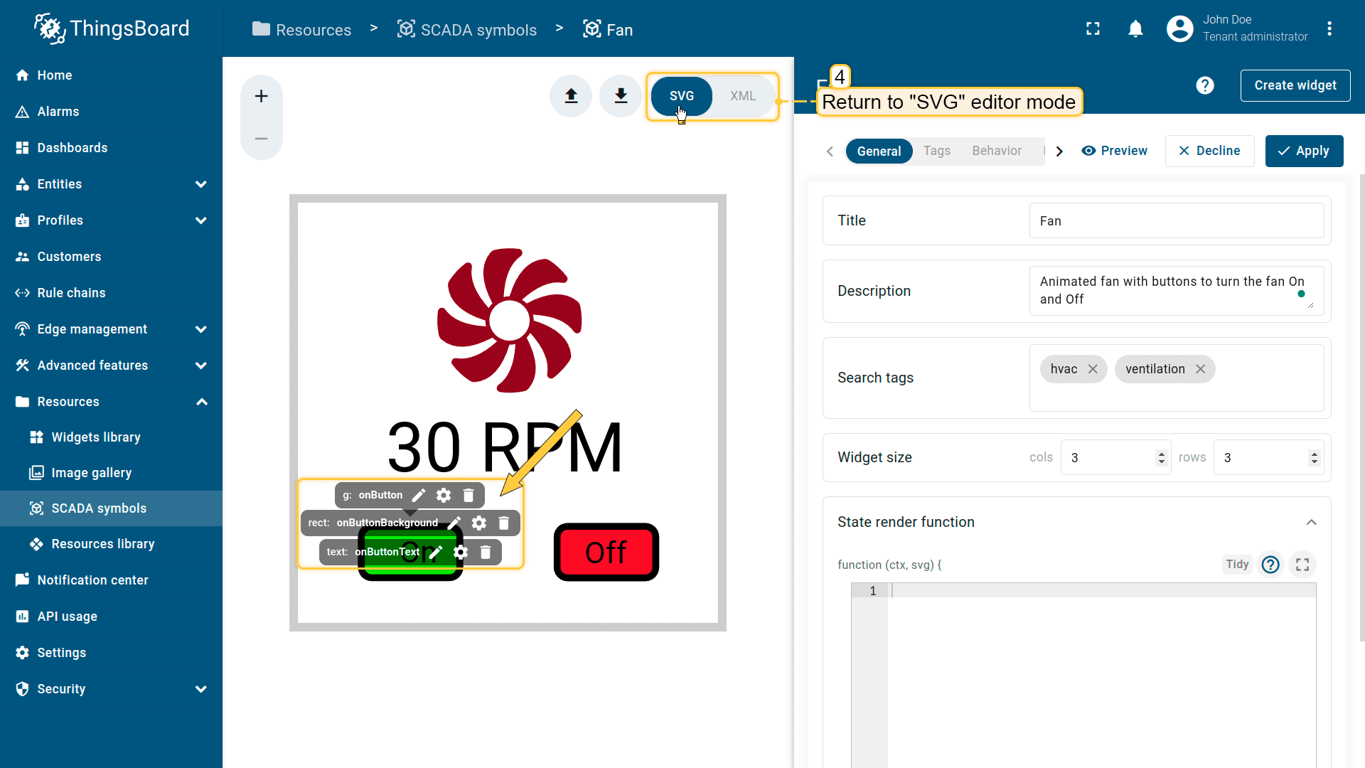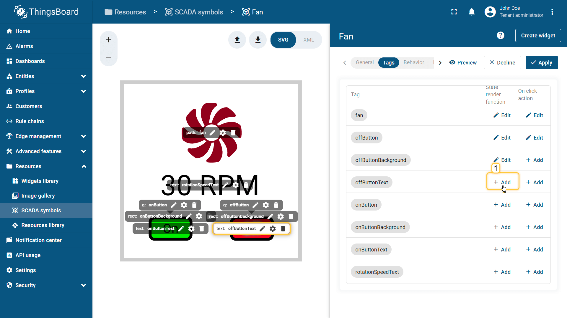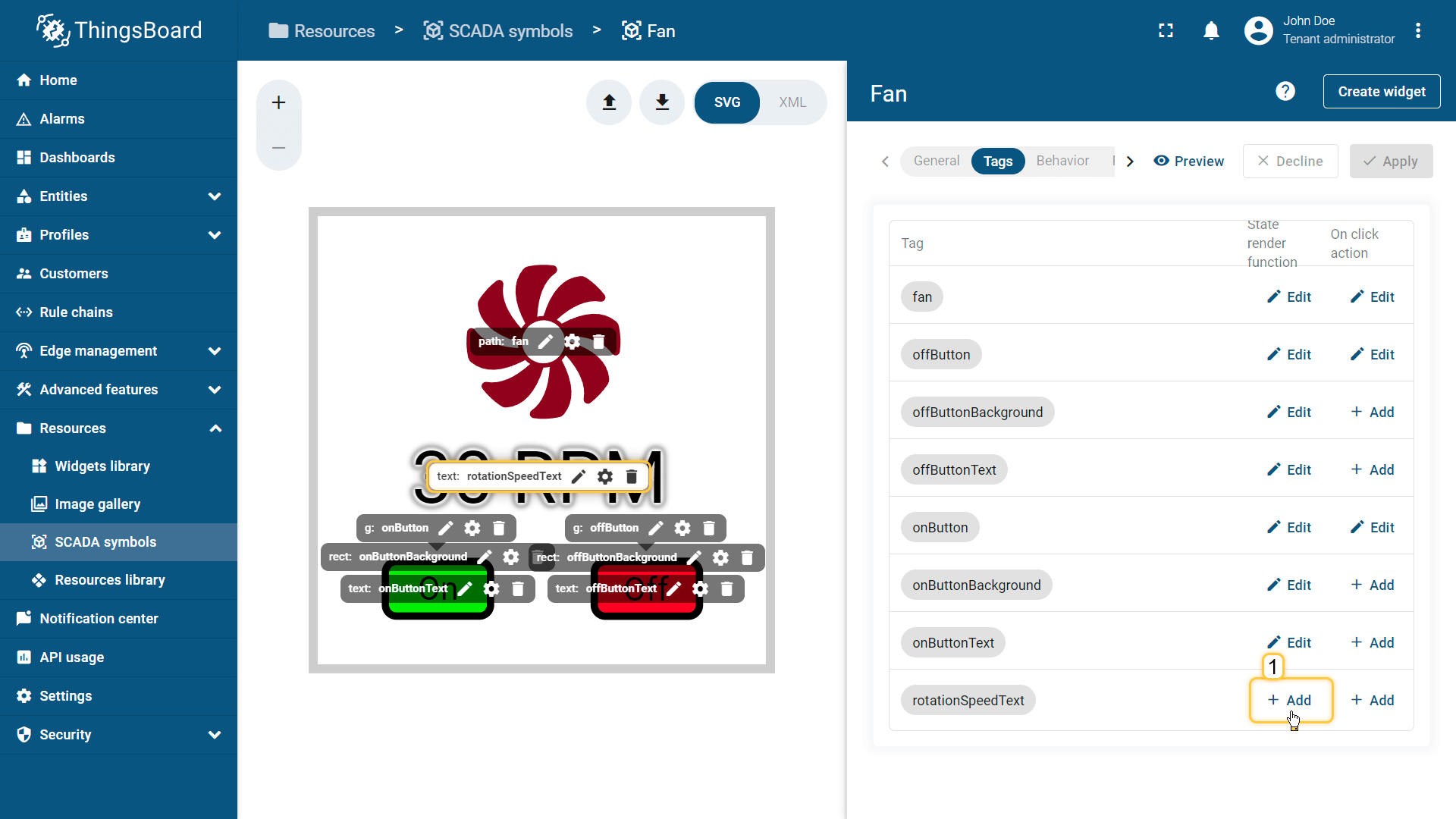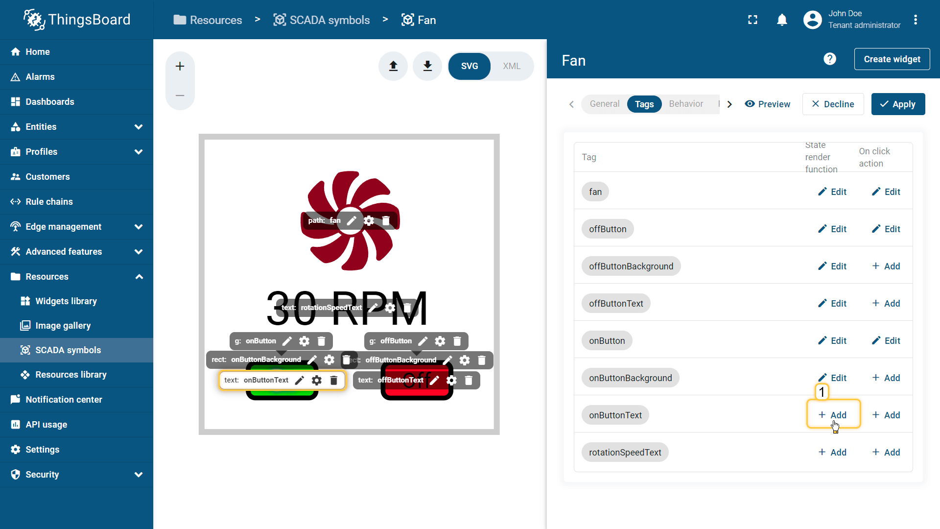 在ThingsBoard中创建SCADA symbol涉及SVG文件及以下概念: