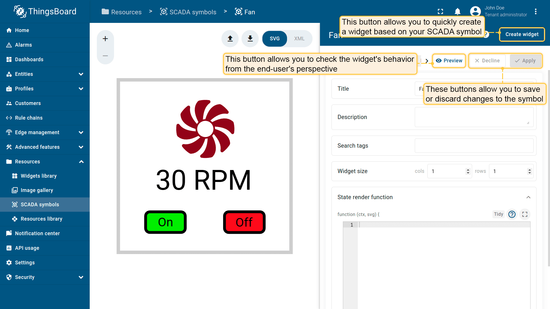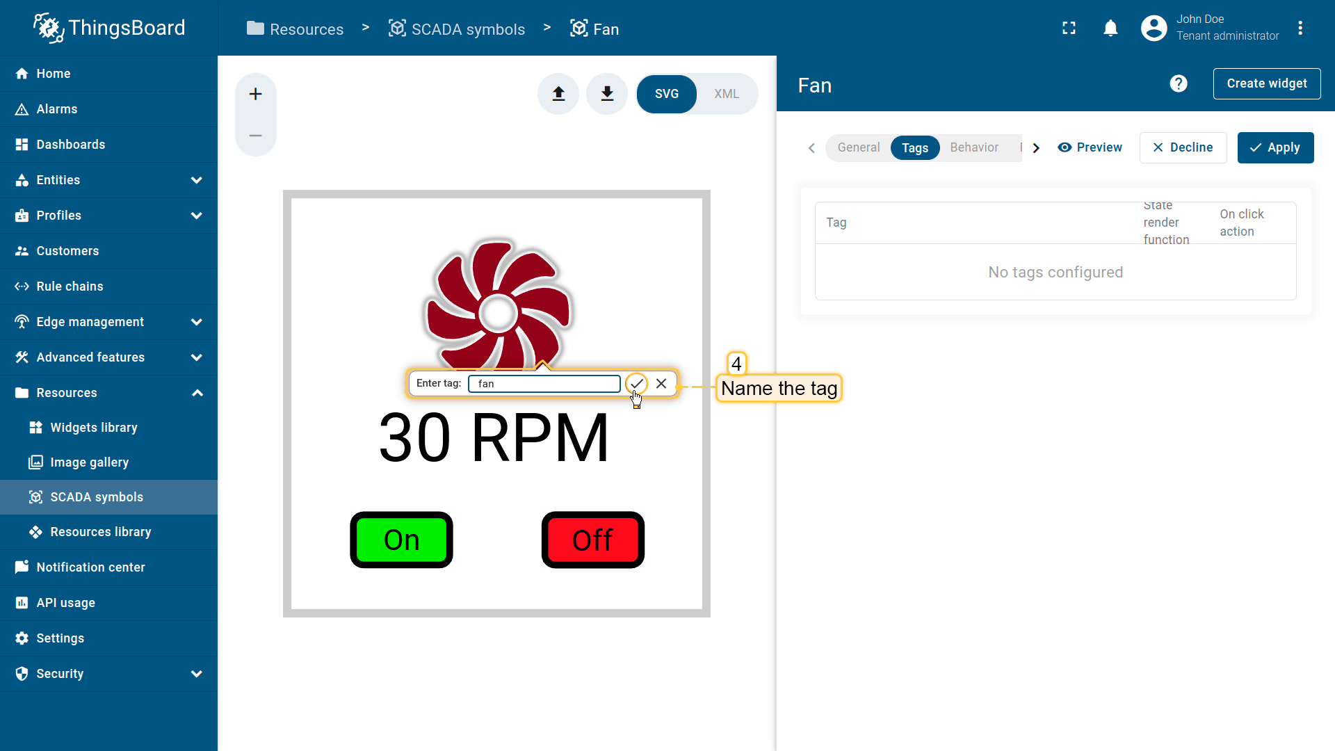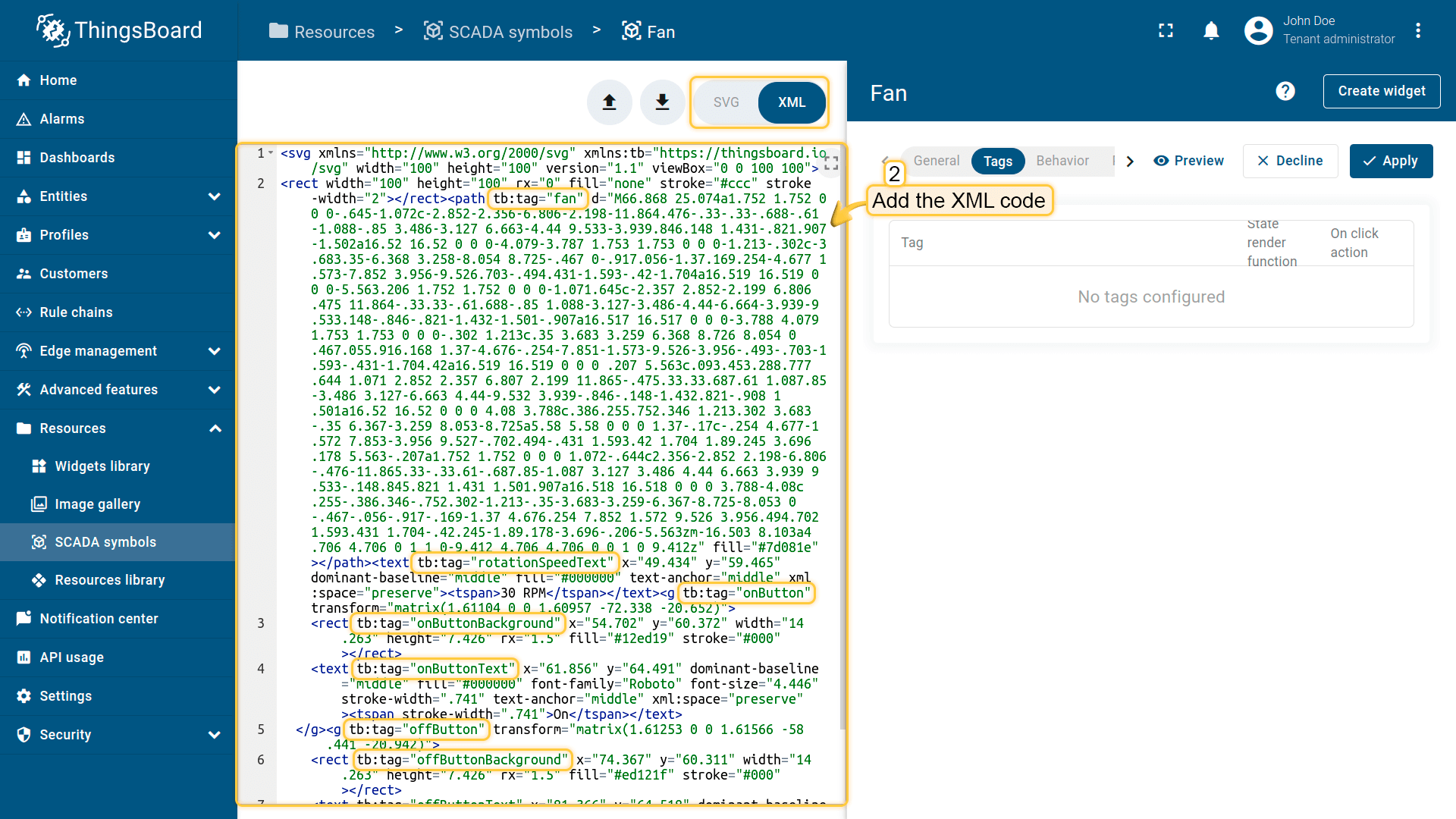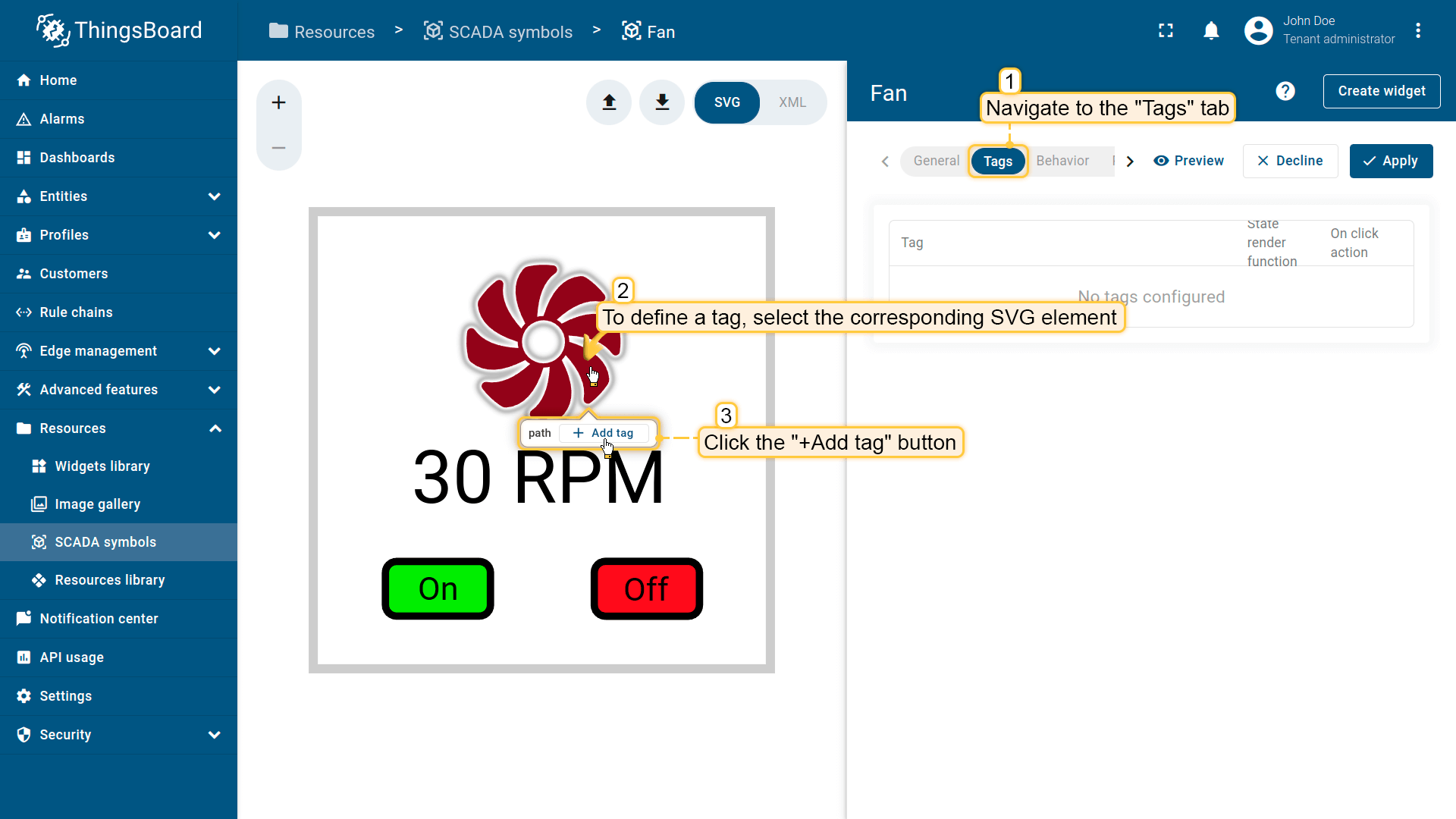 在ThingsBoard中创建SCADA symbol涉及SVG文件及以下概念:
