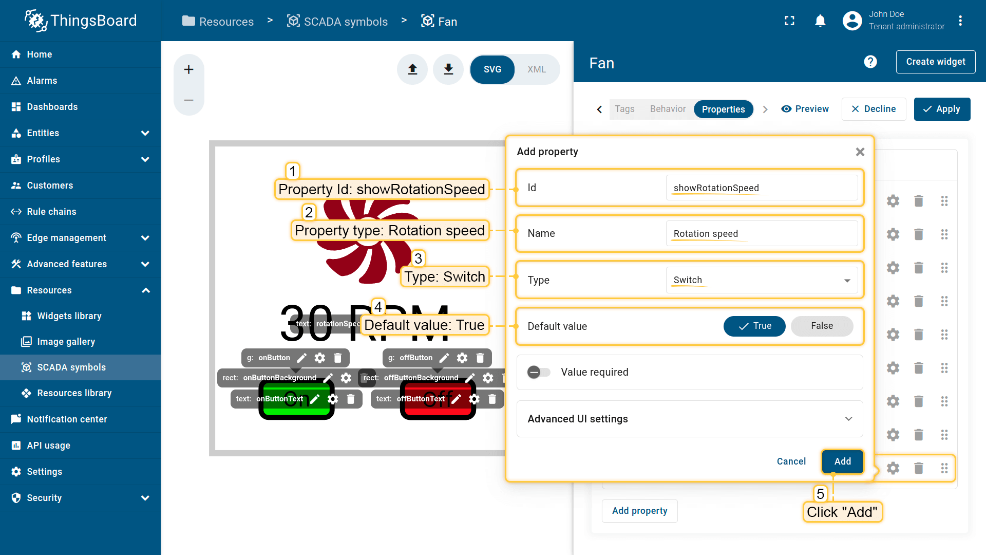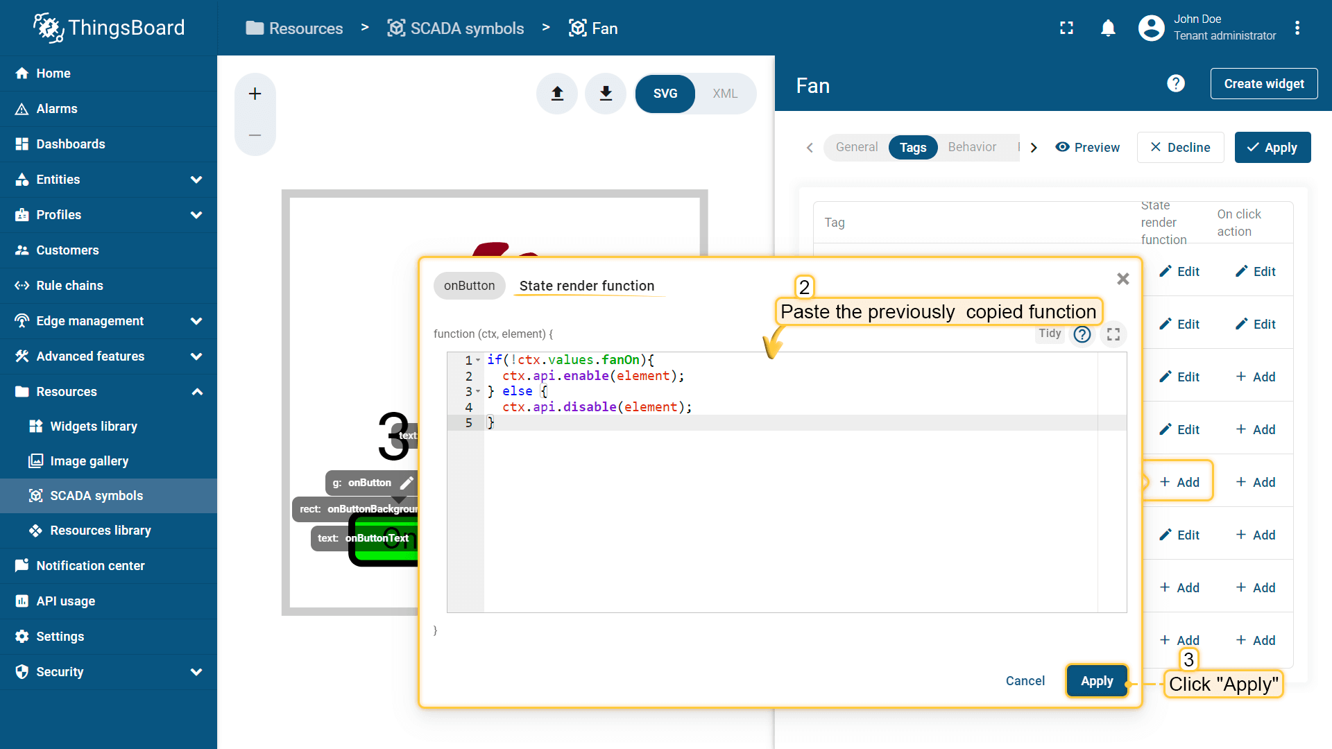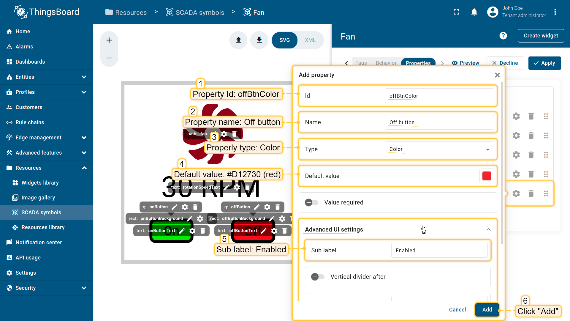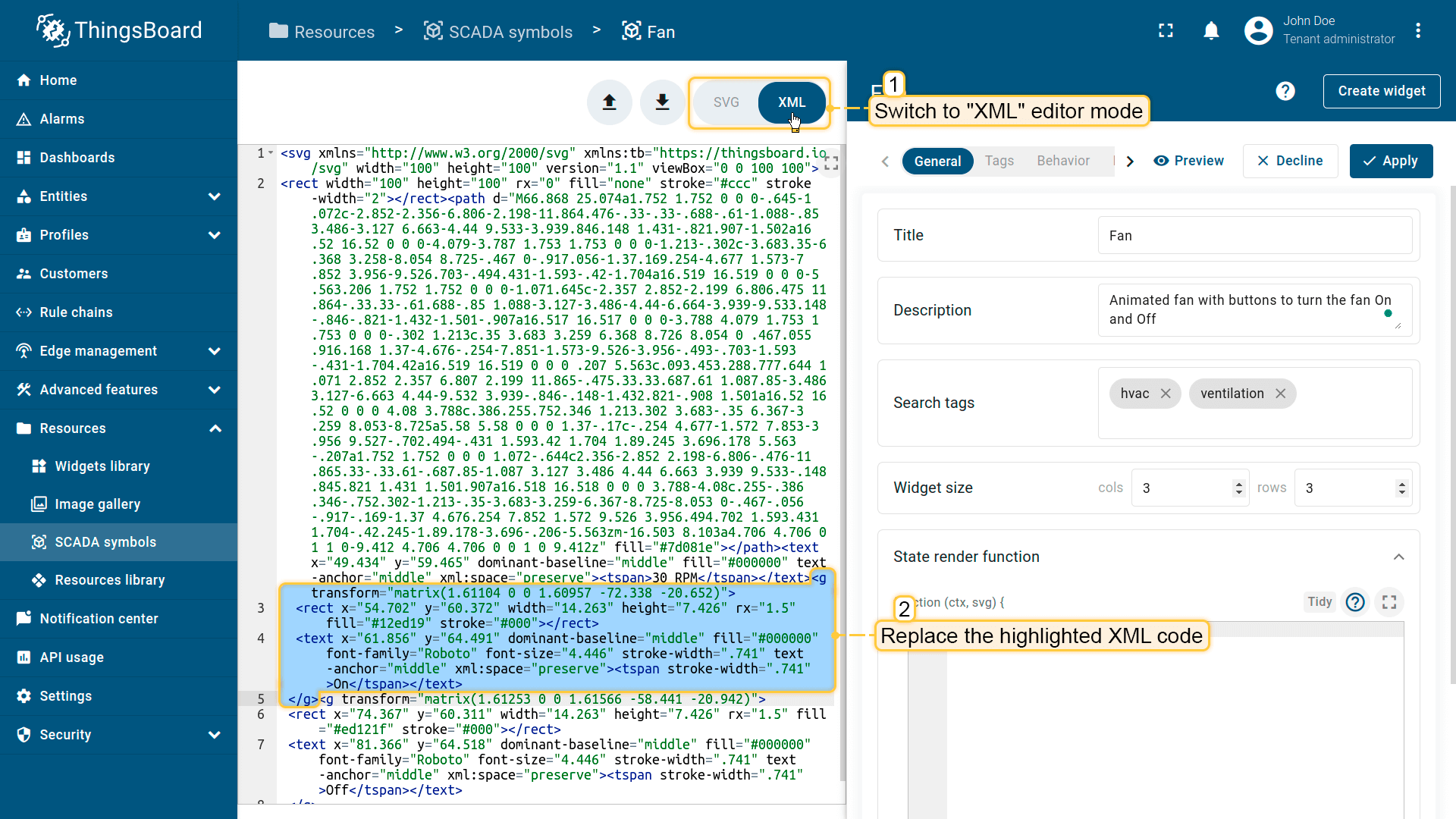 在ThingsBoard中创建SCADA symbol涉及SVG文件及以下概念: